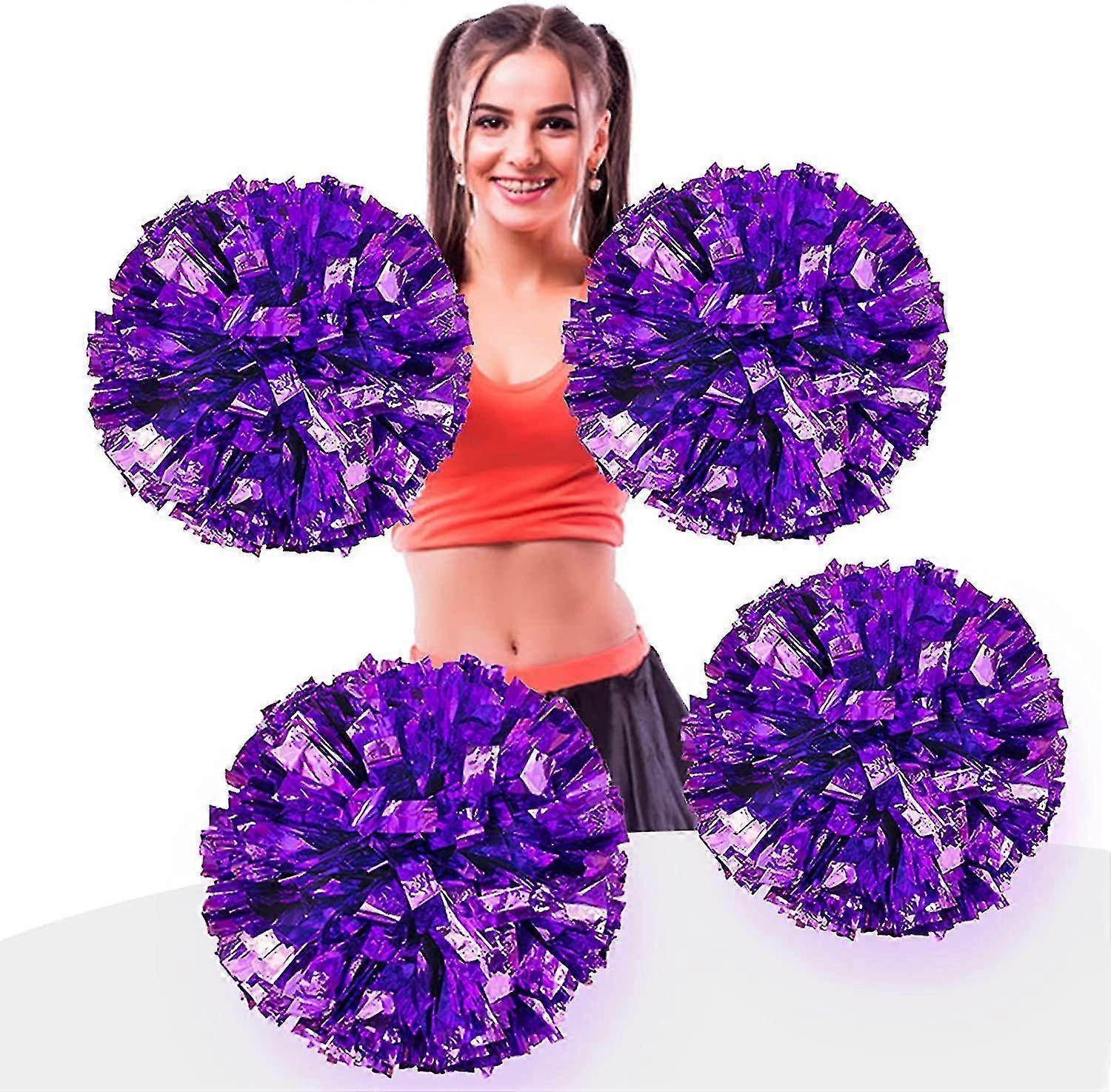 4pcs Metallic Foil Cheerleading Pom Poms, Premium Cheerleader Pompoms Kit, Cheering Hand Flowers 9.8 Inches