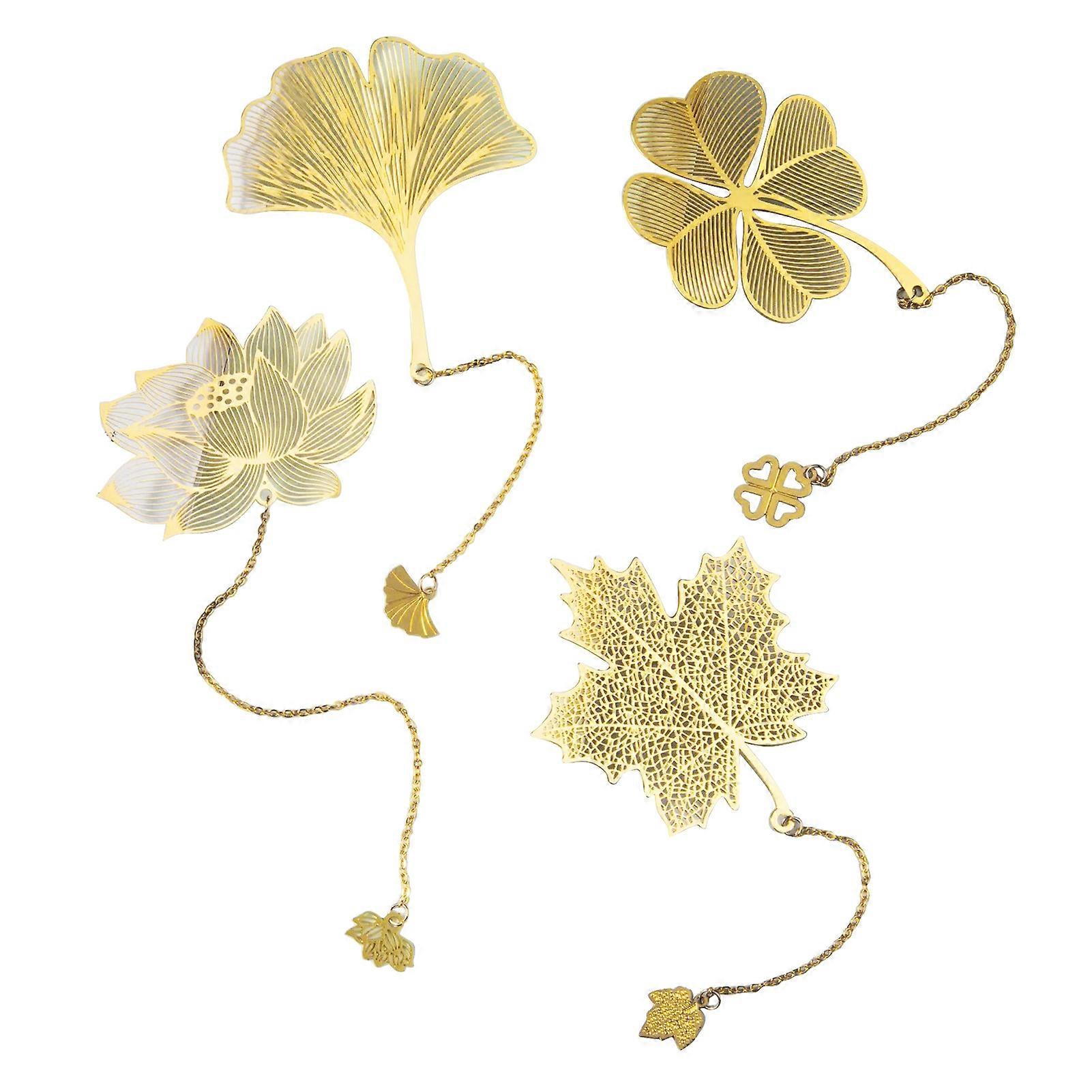 4pcs Metal Leaf Bookmark Yellow Hollow Bookmark Portable Delicate Bookmark with Metal Pendant for Students Readers Writers
