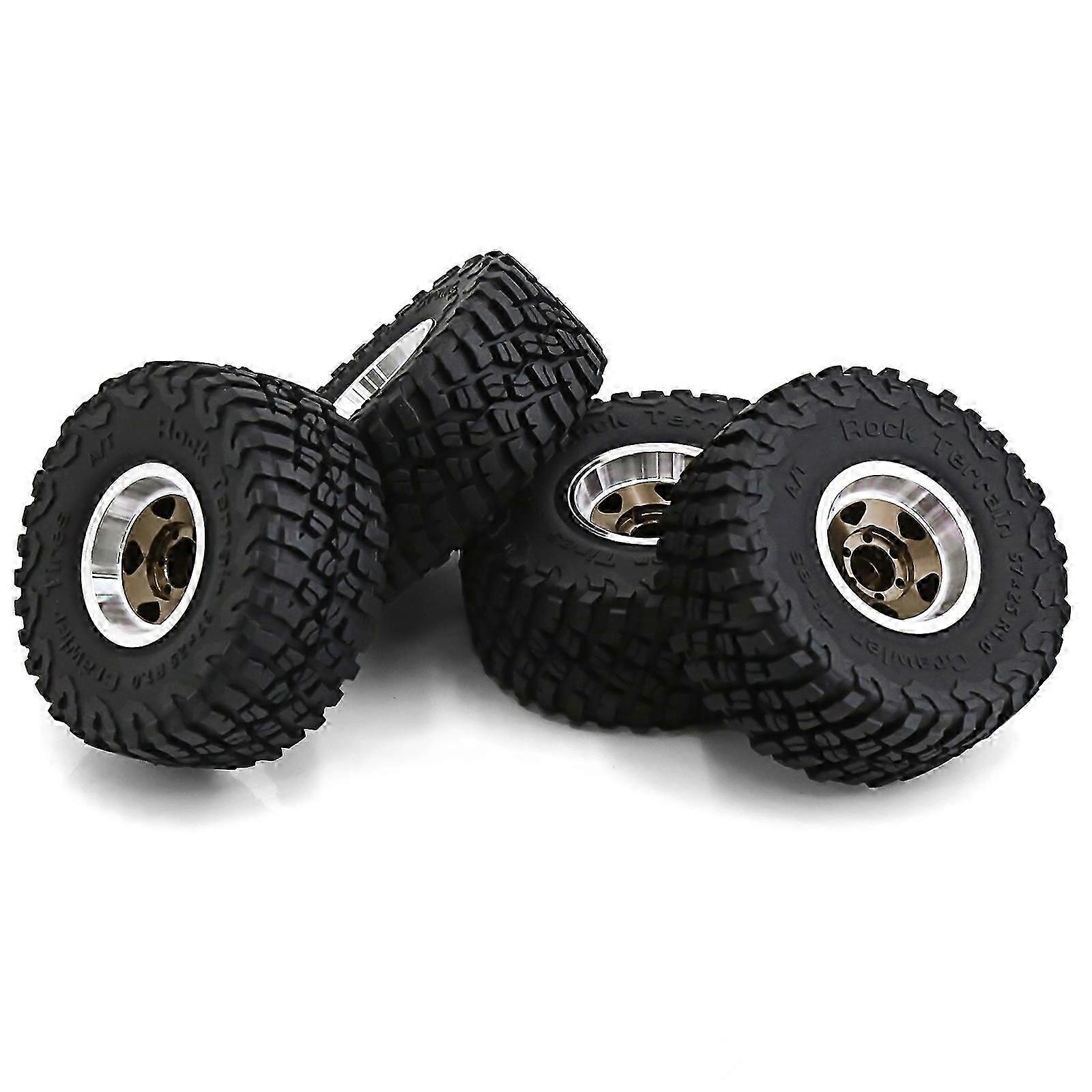 4pcs Remote Control Tires 57mm with 7mm Wheel Hex Beadlock Wheel Rim Rubber Tire Set Replacement for Axial SCX24 AX24 TRX4M FCX24 1/18 1/24 Car
