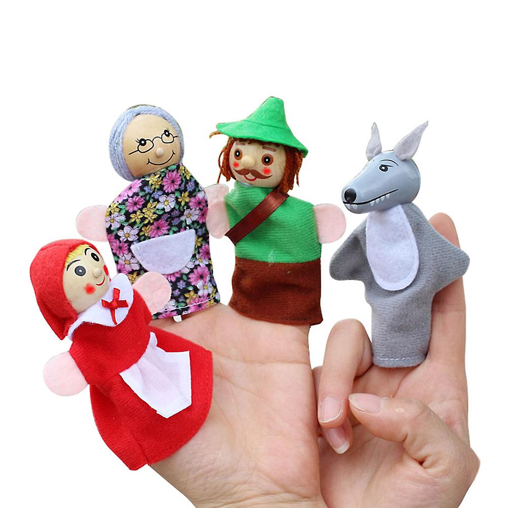 4pcs/Lot Kids Finger Puppets Doll Plush Toys Little Red Riding Hood Wooden Headed Fairy Tale Story Telling Hand Puppets
