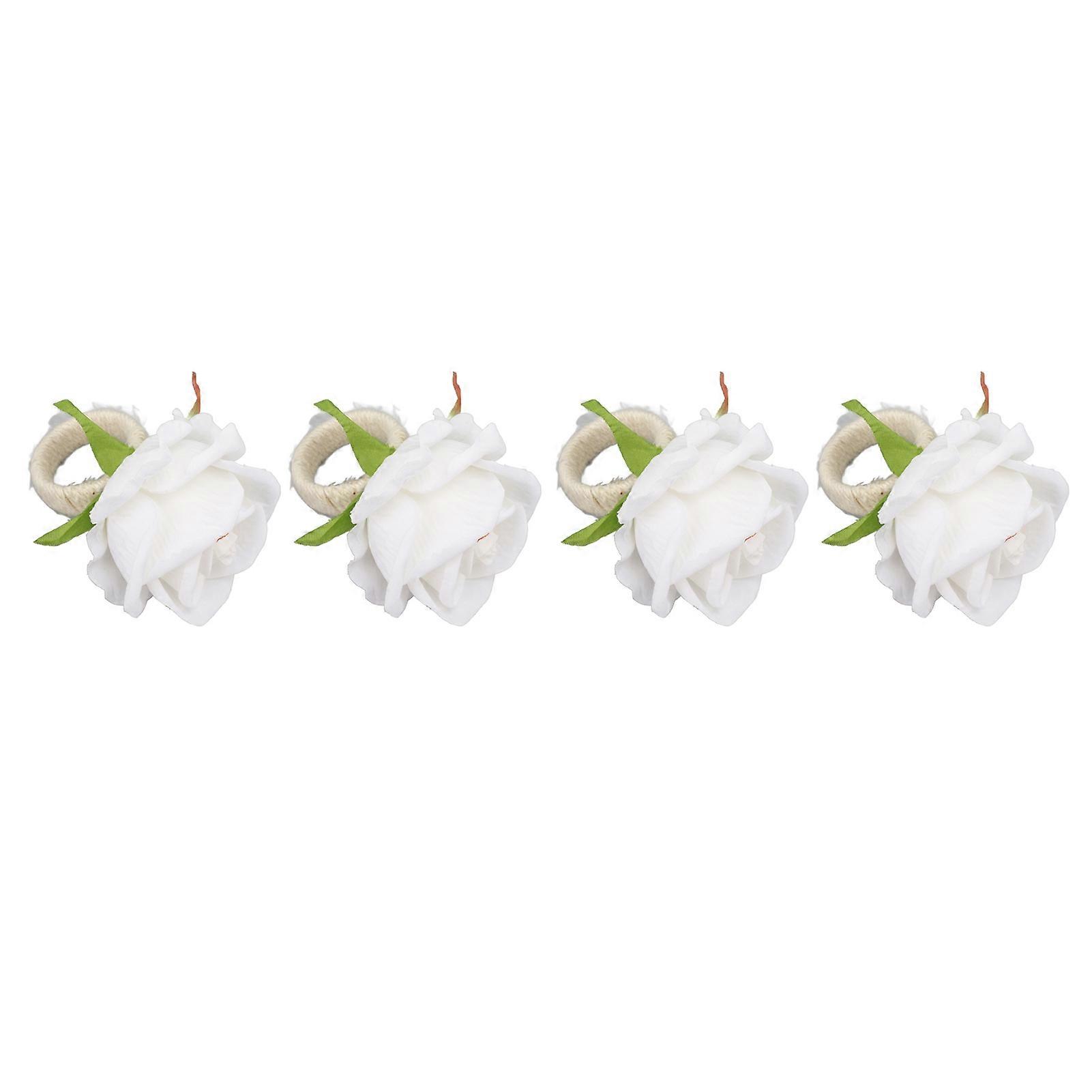 4PCS Rose Napkin Ring Simulated Plastic Reusable Vine Design Napkin Holder Ring for Restaurant White