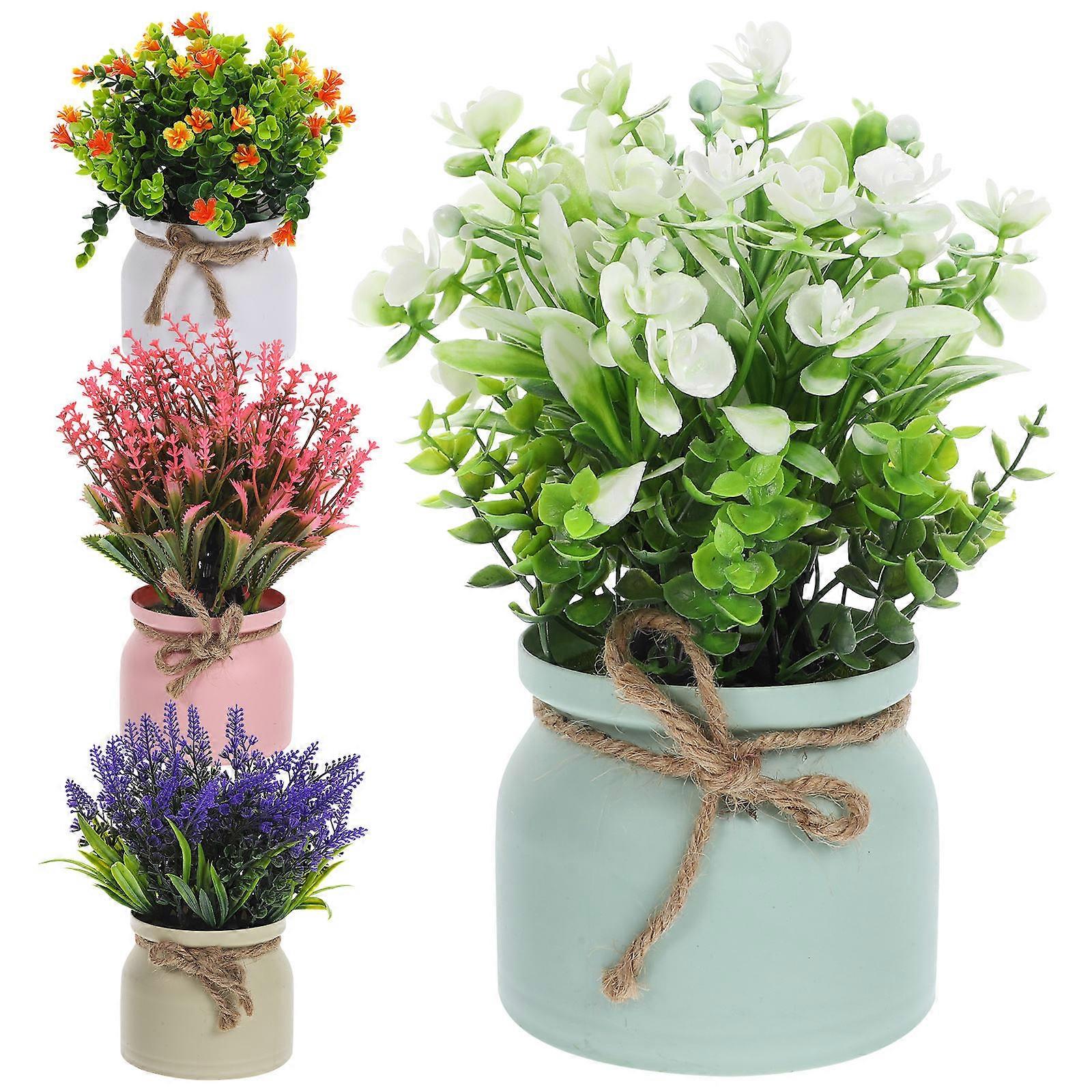 4PCS Artificial Bonsai Faux Potted Flower Plants Decorative Indoor Outdoor Home Office Greenery Accent No Maintenance