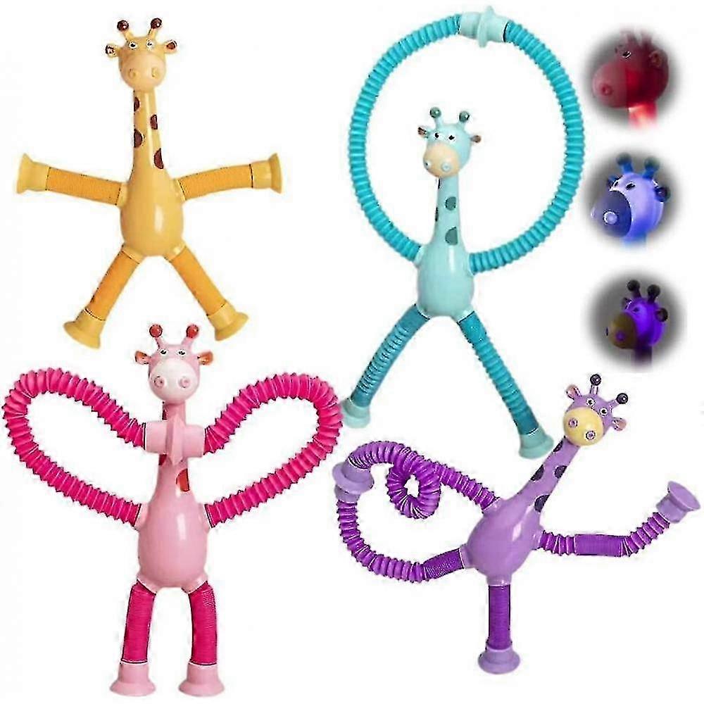 4pcs Telescopic Suction Cup Giraffe Toy, Shape-changing Giraffe Telescopic Tube Cartoon Puzzle Suction Cup Parent-child Interactive NYS--With light