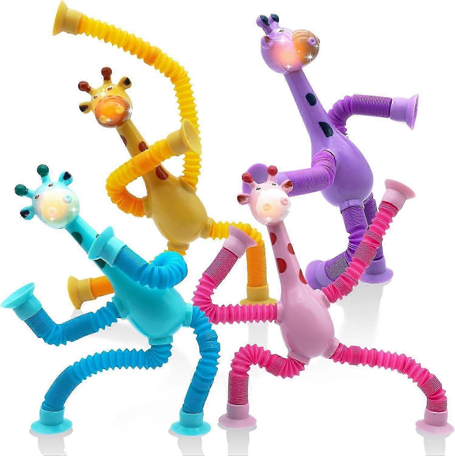 4pcs Telescopic Suction Cup Giraffe Toys, Educational Stress Relief Tube Toys Deformed Cartoon Telescopic Tube Decompression Toys with Light