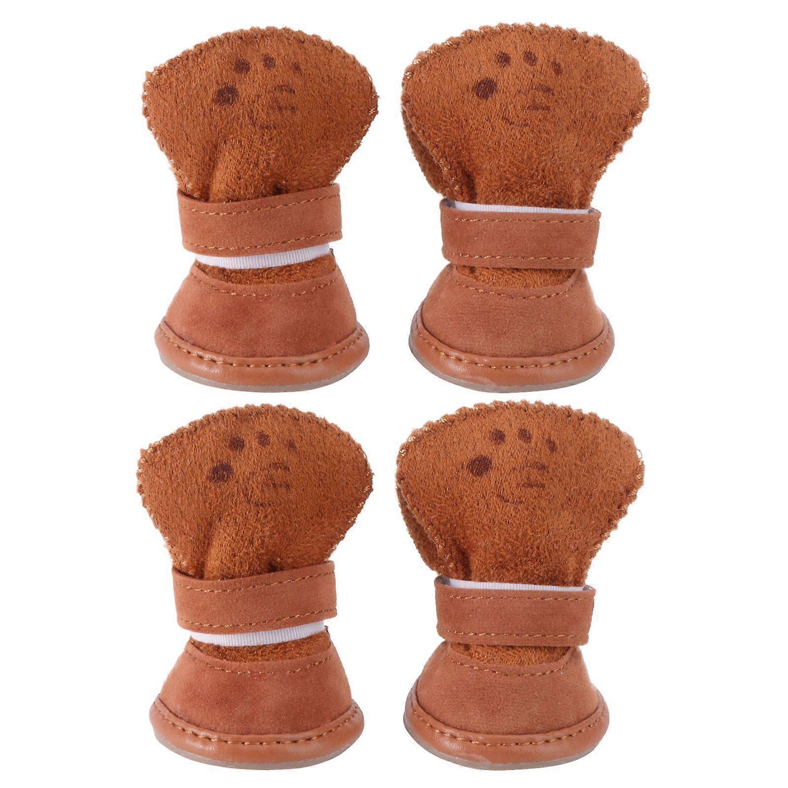 4pcs Winter Pet Dog Puppy Casual Anti-Slip Fleece Snow Boots Warm Dog Shoes Size S (Coffee)