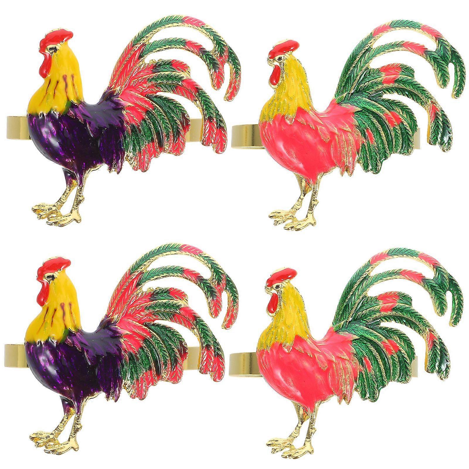 4pcs Alloy Chicken Napkin Rings Decorative Metal Napkin Holders Dining Table Decorative Napkin Buckles