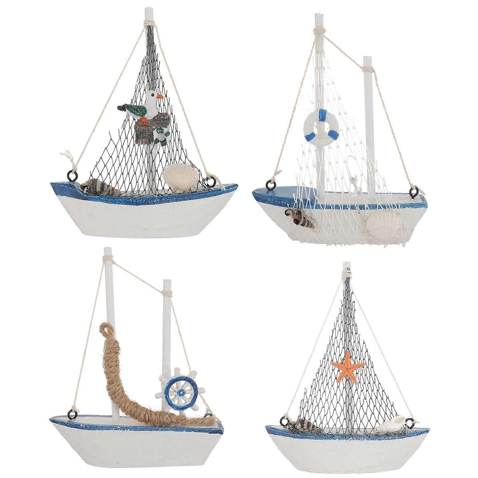 4pcs Mediterranean Style Sailboat Model Nautical Sailing Boat Ship Wooden Craft