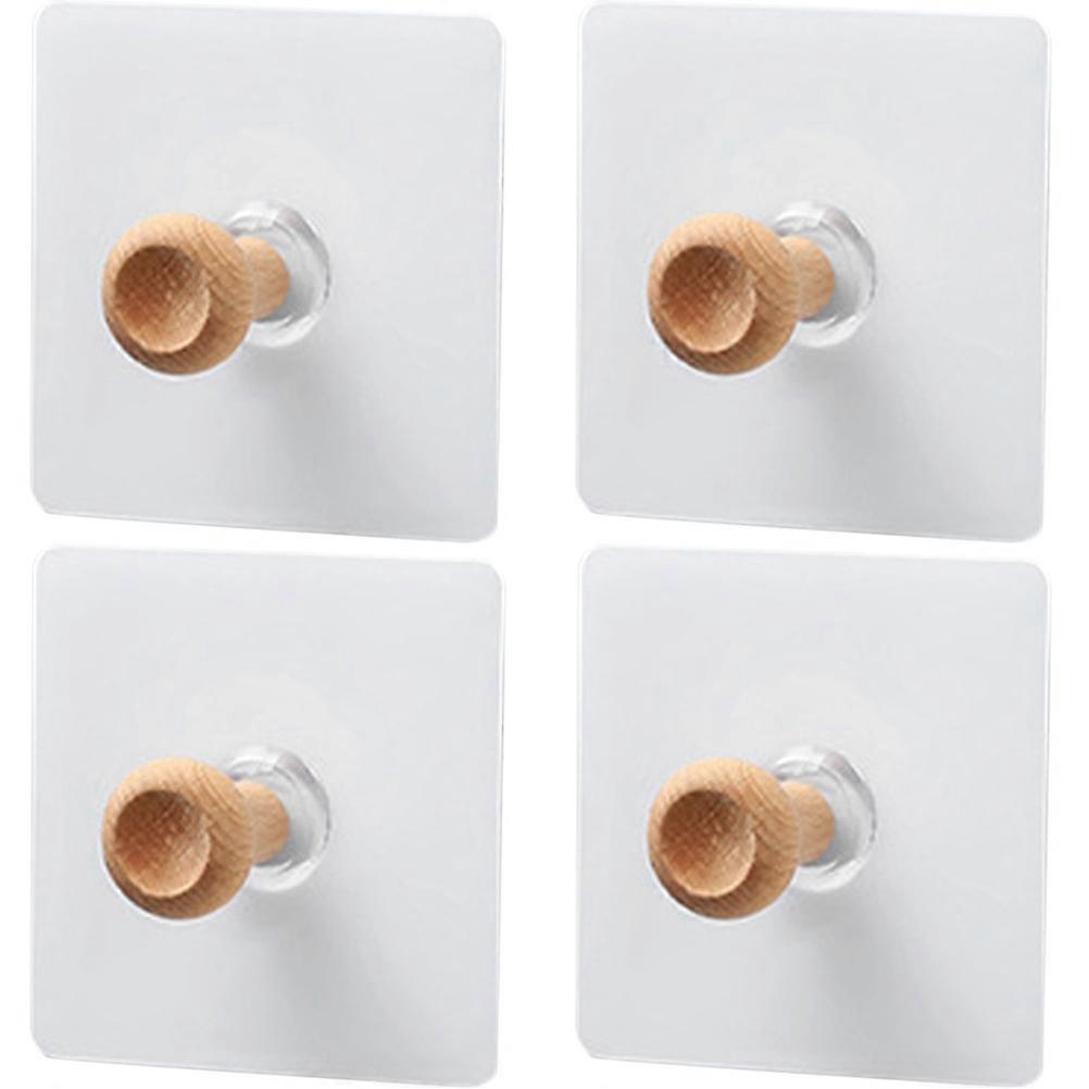 4pcs Wall Wooden Hooks Adhesive Towel Hat Hangers Clothes Hooks Bathroom Hooks