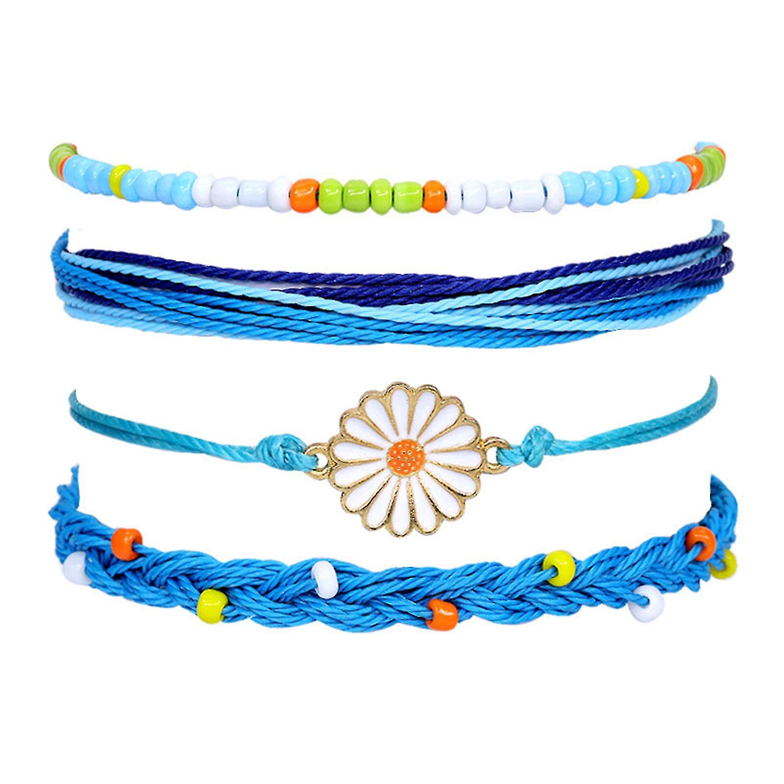 4pcs Women Bracelets Bohemian Style Waterproof Alloy Hand-woven Bracelet Braided Bangle With Pendant Set Birthday Gifts
