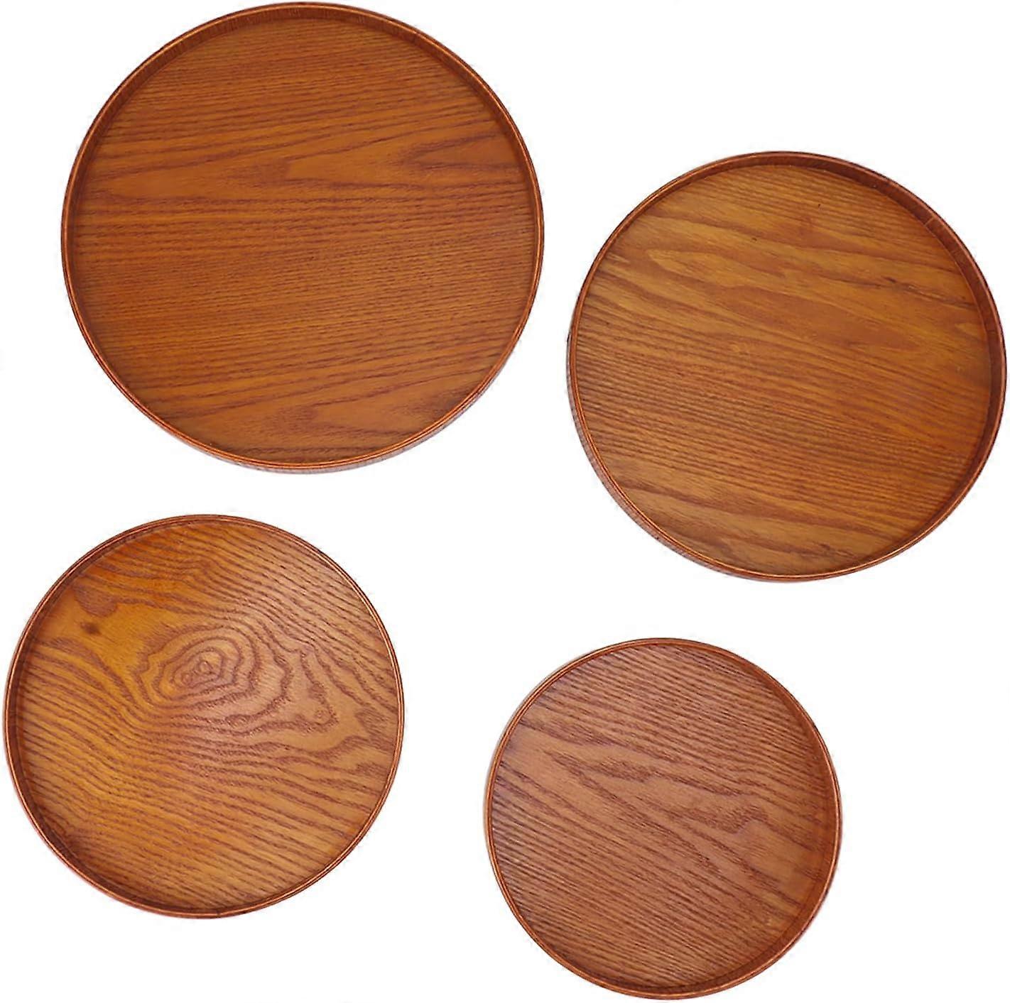 4pcs Wooden Tray Decorative Tray Set Slip Resistant Spill Proof Durable Safe Multifunctional Round Serving Tray for Restaurant (black)