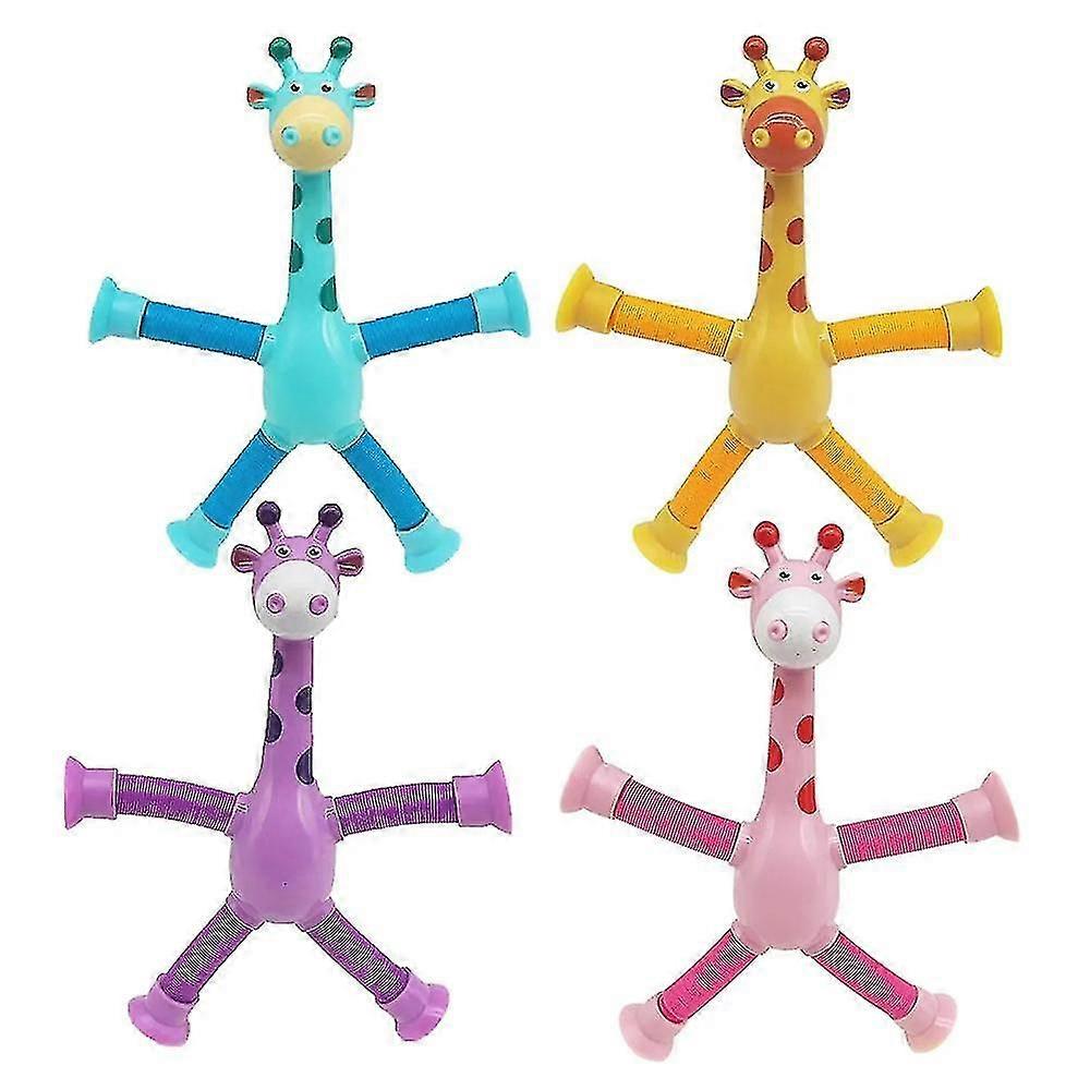 4pcs Cartoon Sucker Telescopic Tube Giraffe Variety Shape Stretch Tube Puzzle Decompression Toys