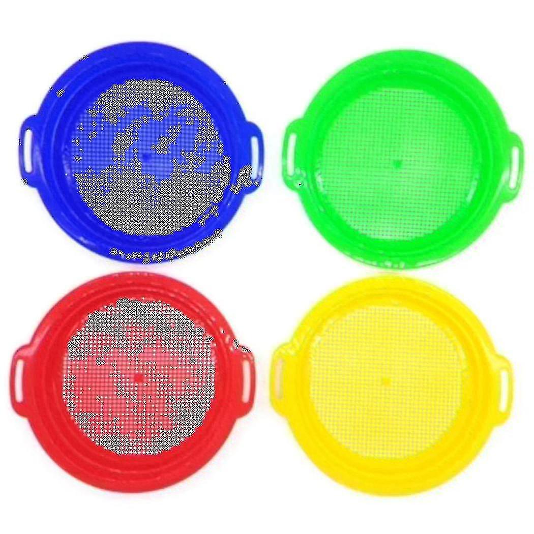 4pcs Stop Sand Sifter Sieves Toy For Sand Beach 4 Pack Set Red Blue Yellow Green For Children Kids