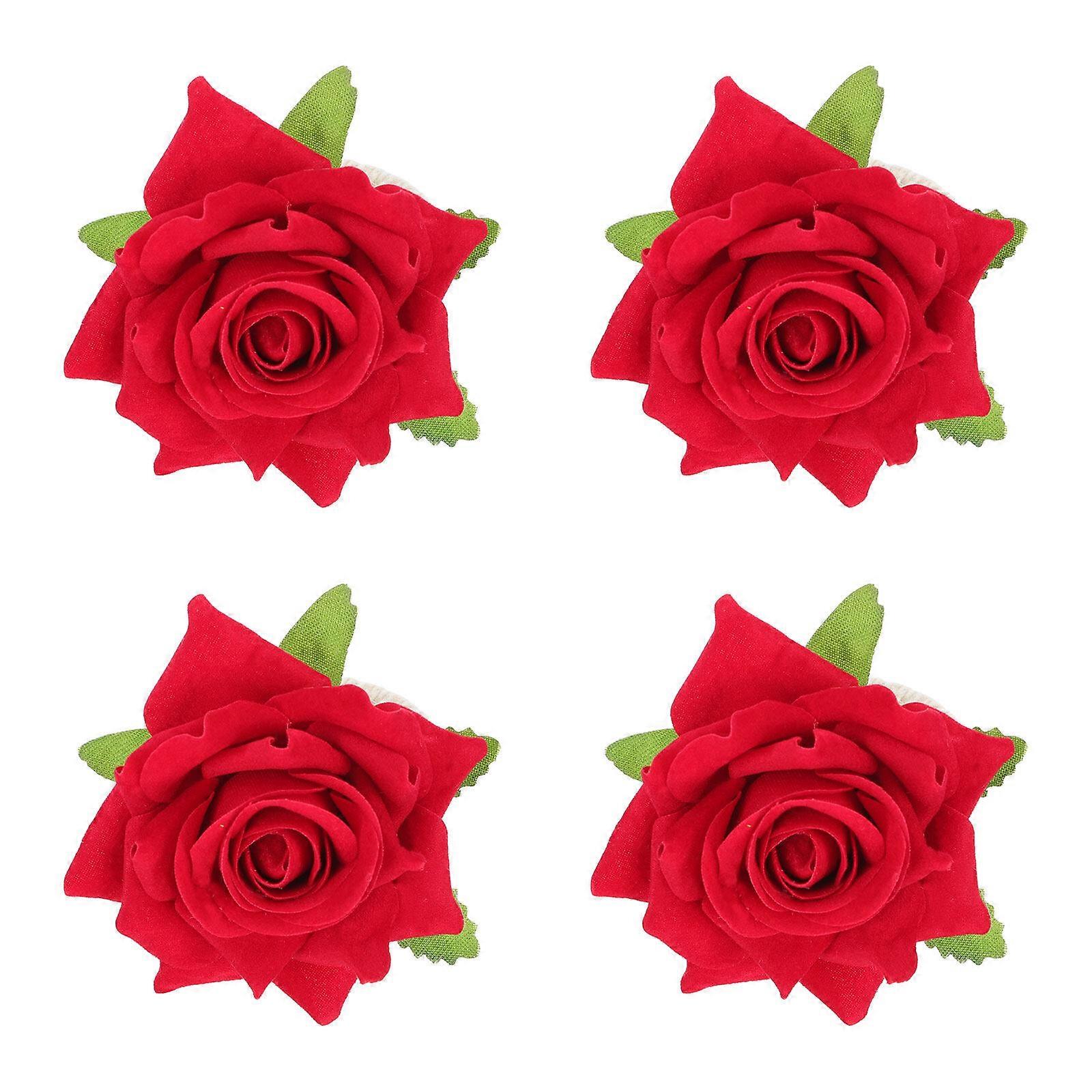 4pcs Exquisite Artificial Rose Napkin Buckles Decorative Napkin Rings for Party (Red)