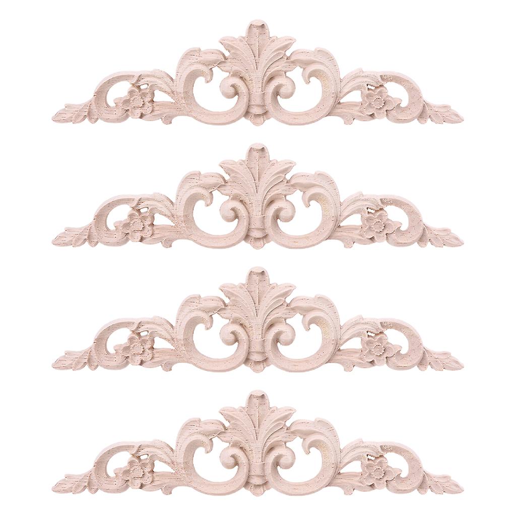 4pcs Exquisite Wood Carved Onlay Appliques for Furniture Cabinet Unpainted Decal