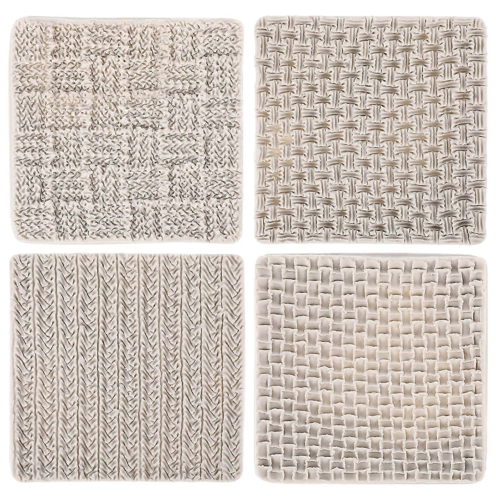 4PCS Weave Knitting Silicone Mold Crochet Texture Embossed Design Cake Candy Chocolate Fondant Soap Moulds Kitchen Baking Tools (Grey)
