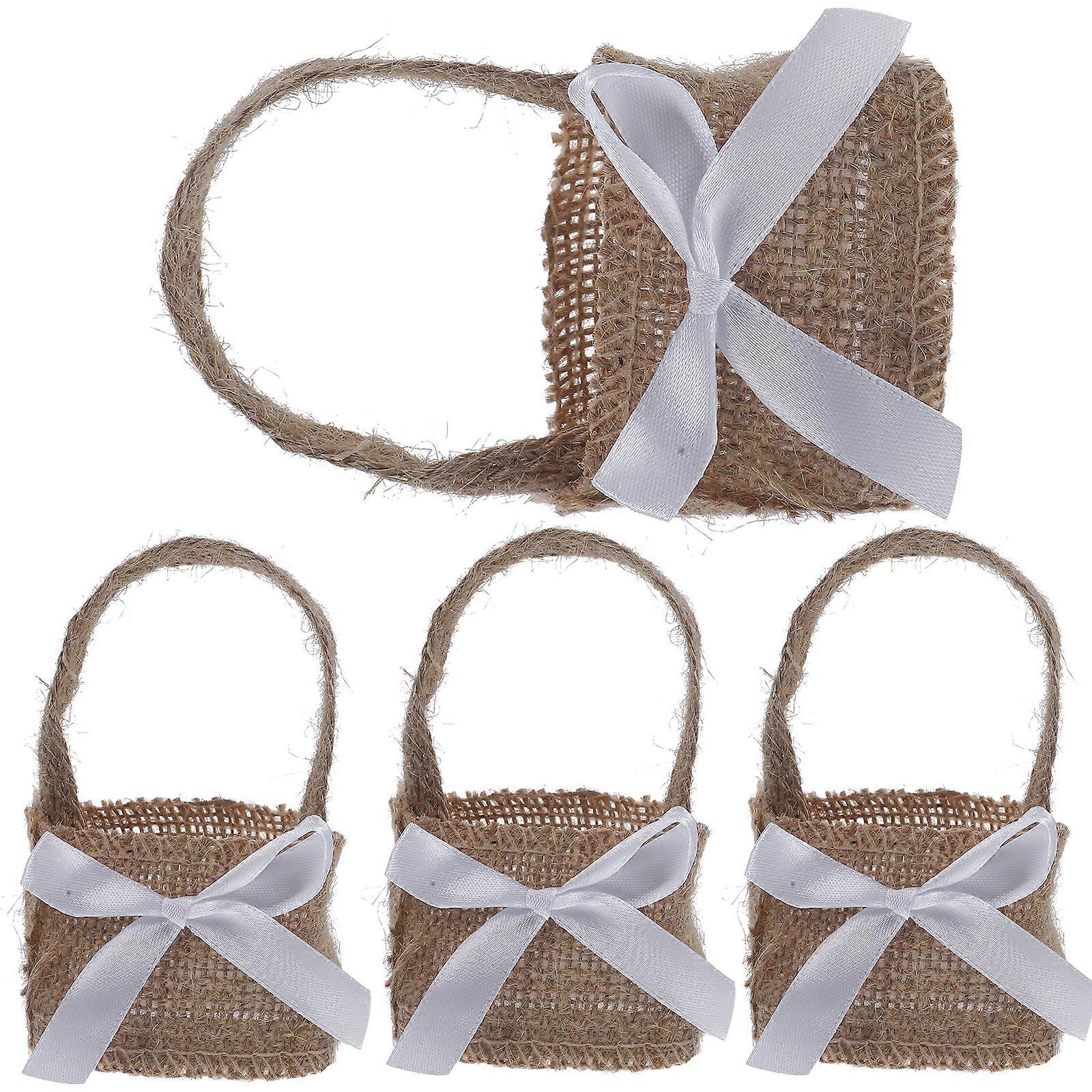 4pcs Beautiful Wedding Party Exquisite Bag Lovely Candy Storage Case Bag Linen Flower BasketGFT-248-BR1