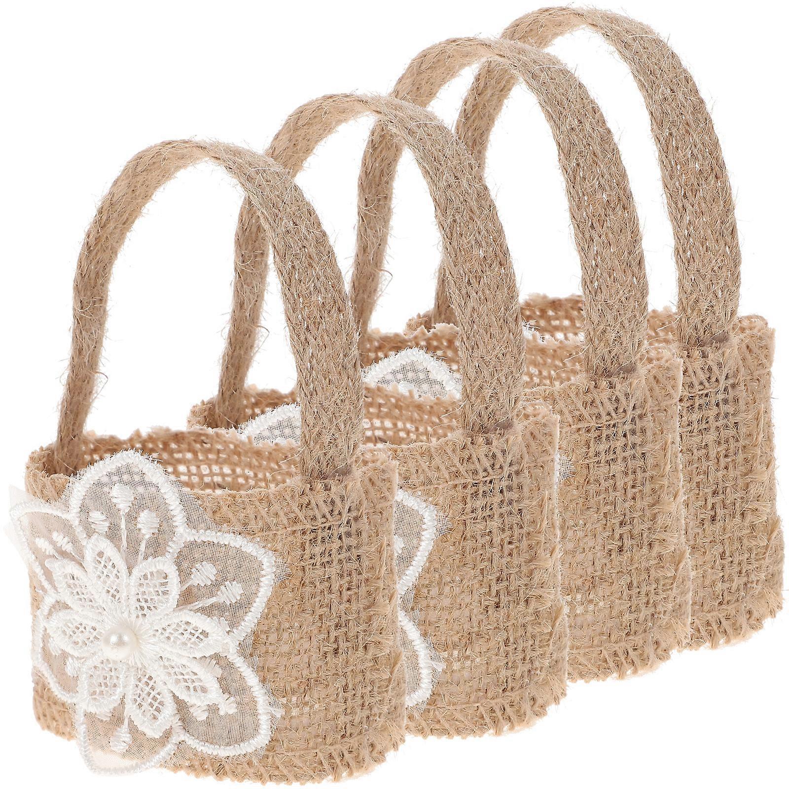 4pcs Beautiful Exquisite Linen Bag Flower Basket Flower Decorated Basket for Party Wedding CandyGFT-130-BR1