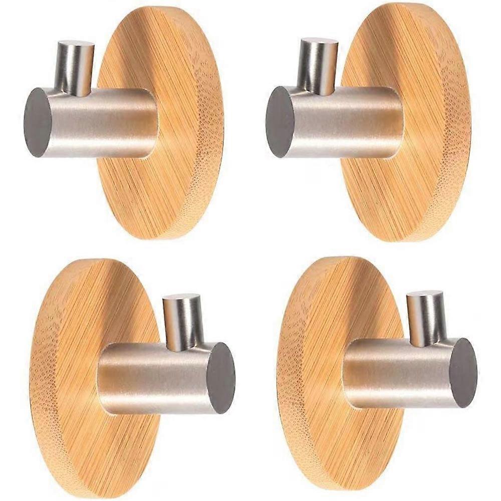 4pcs Self Adhesive Hooks Stainless Steel & Bamboo Bathrobe Hooks Wall Hooks Kitc