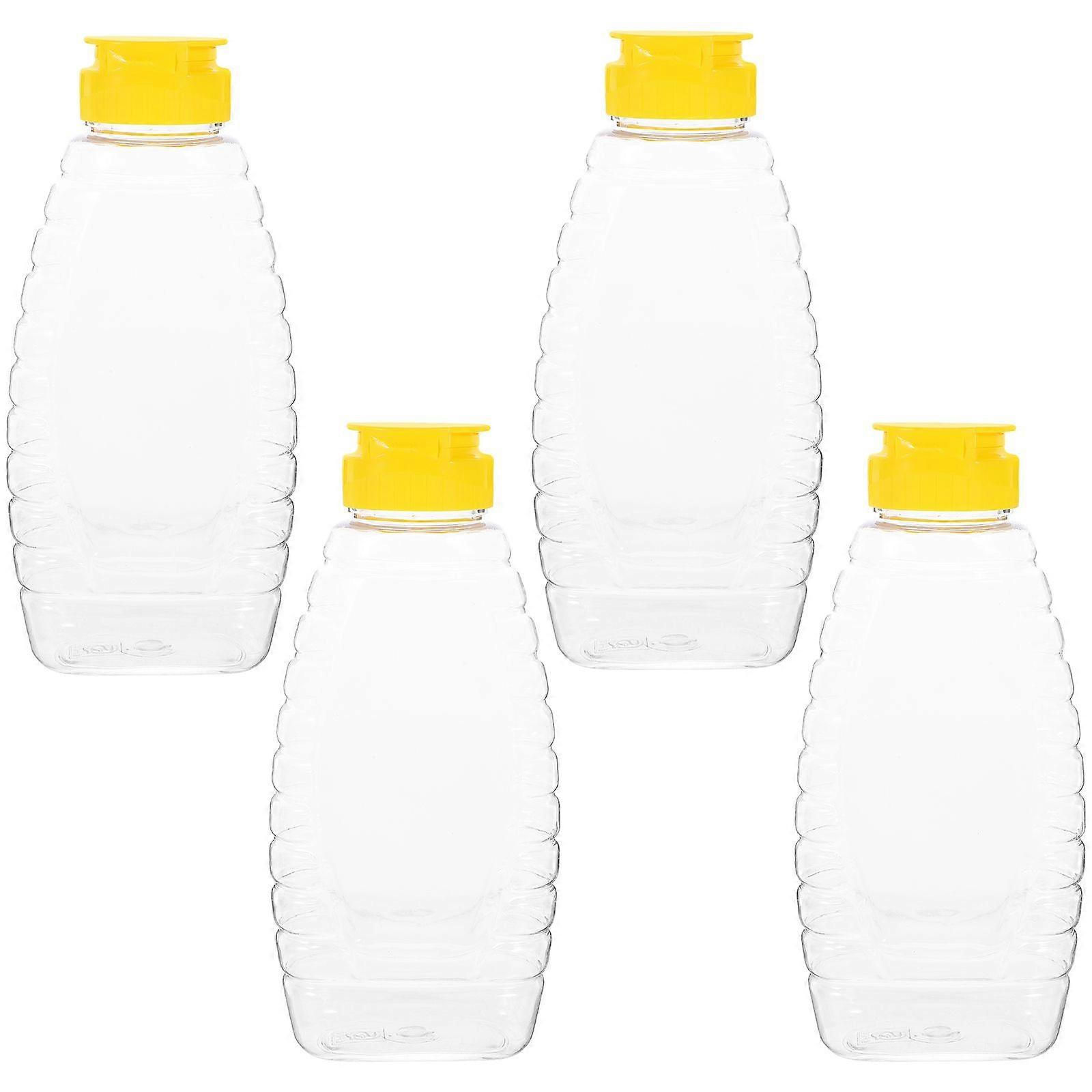 4pcs Transparent Plastic Honey Bottle Food Packaging Bottle Honey Jar With Lid Honey Bottle Jam Container for Home (500g Capacity)