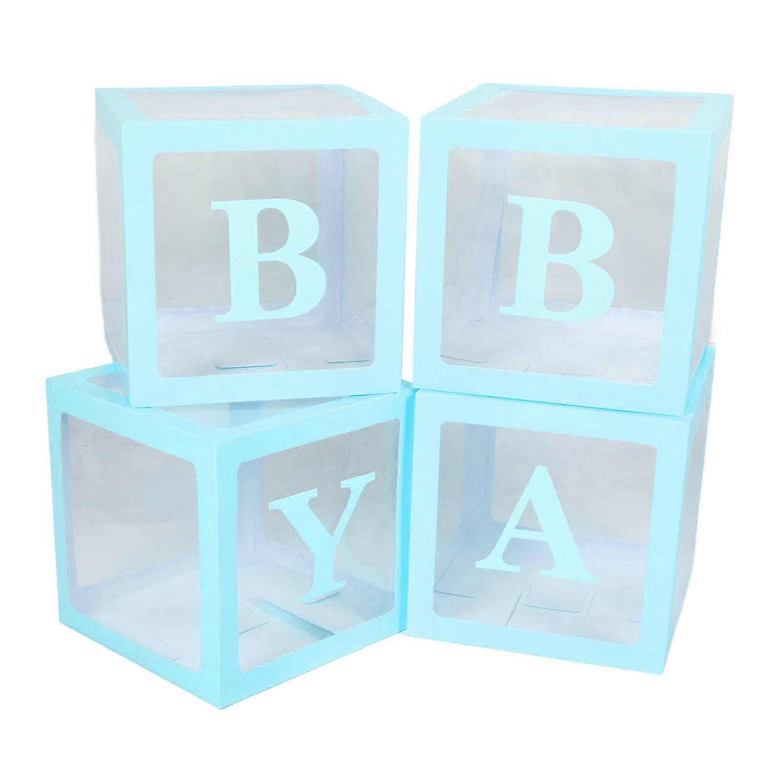 4PCS Transparent Balloon Box with Letters Balloon Gift Decoration Box for Proposal Confession Baby Shower Blue