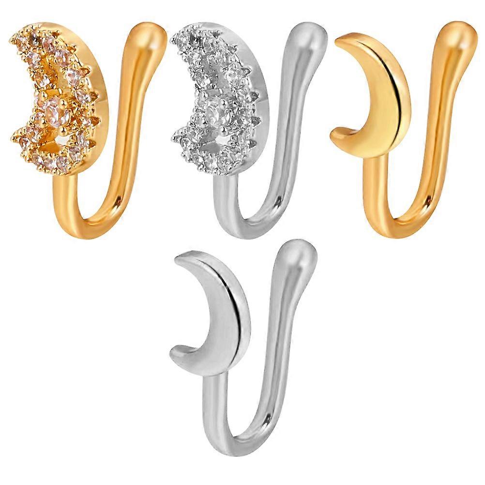 4pcs Non Pierced Moon Nose Rings Lightweight Clip On Nose Jewelry Chic & Unique Fashion Accessories for Women