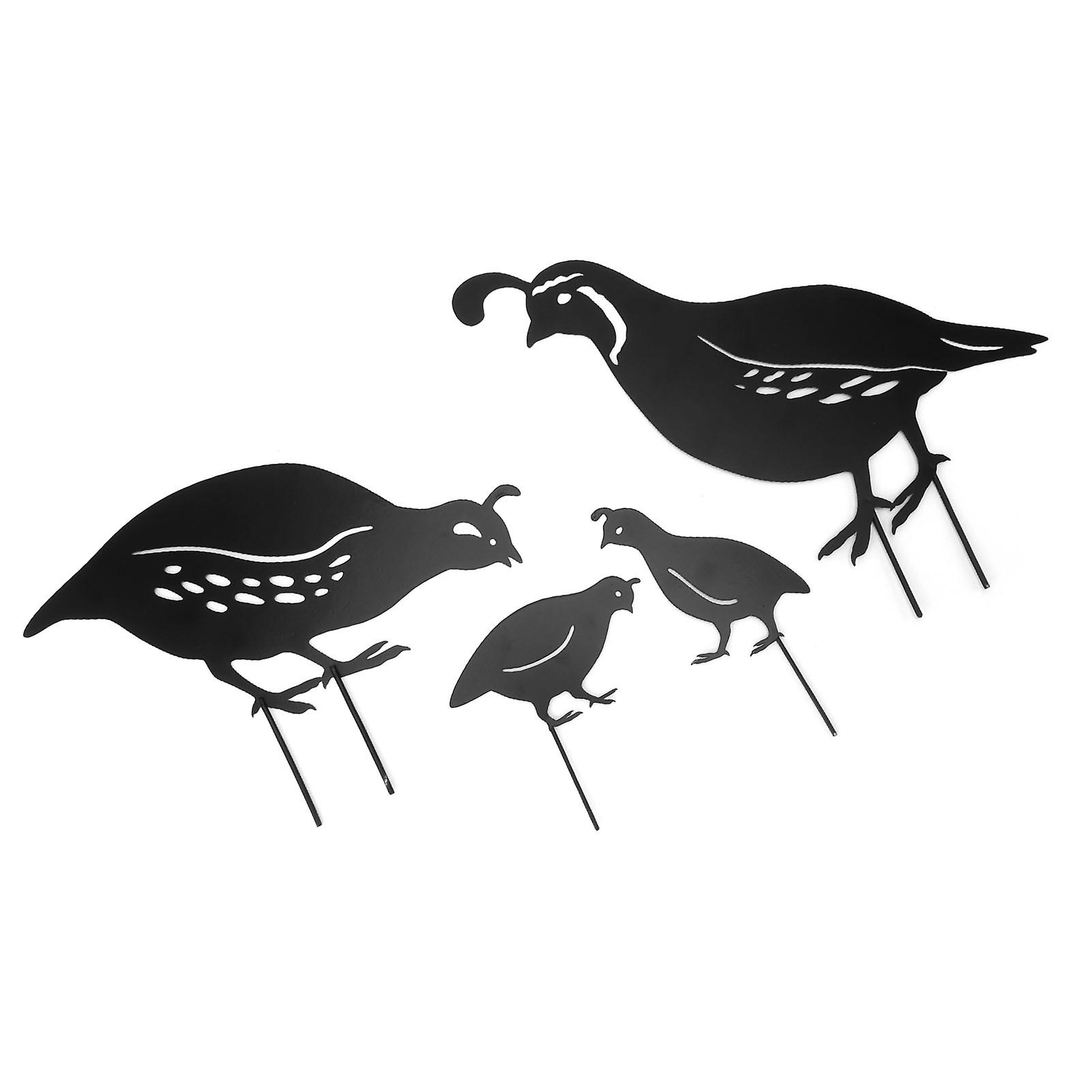 4pcs Iron Art Quail Family Yard Decor 8.2oz Metal Garden Stakes