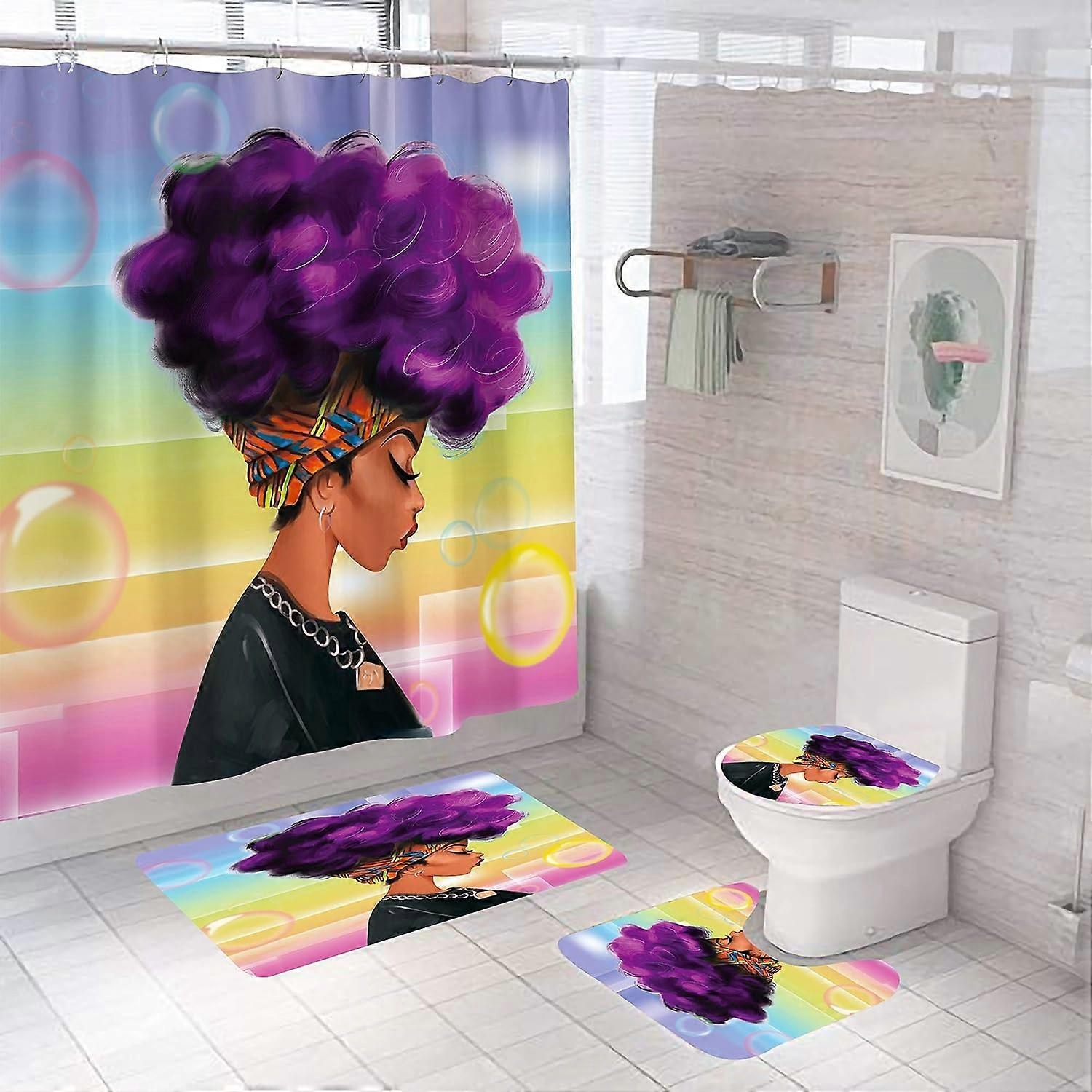 4PCS/Set Sexy African Black Woman Shower Curtain, Shower Curtain and Rug Set for Bathroom