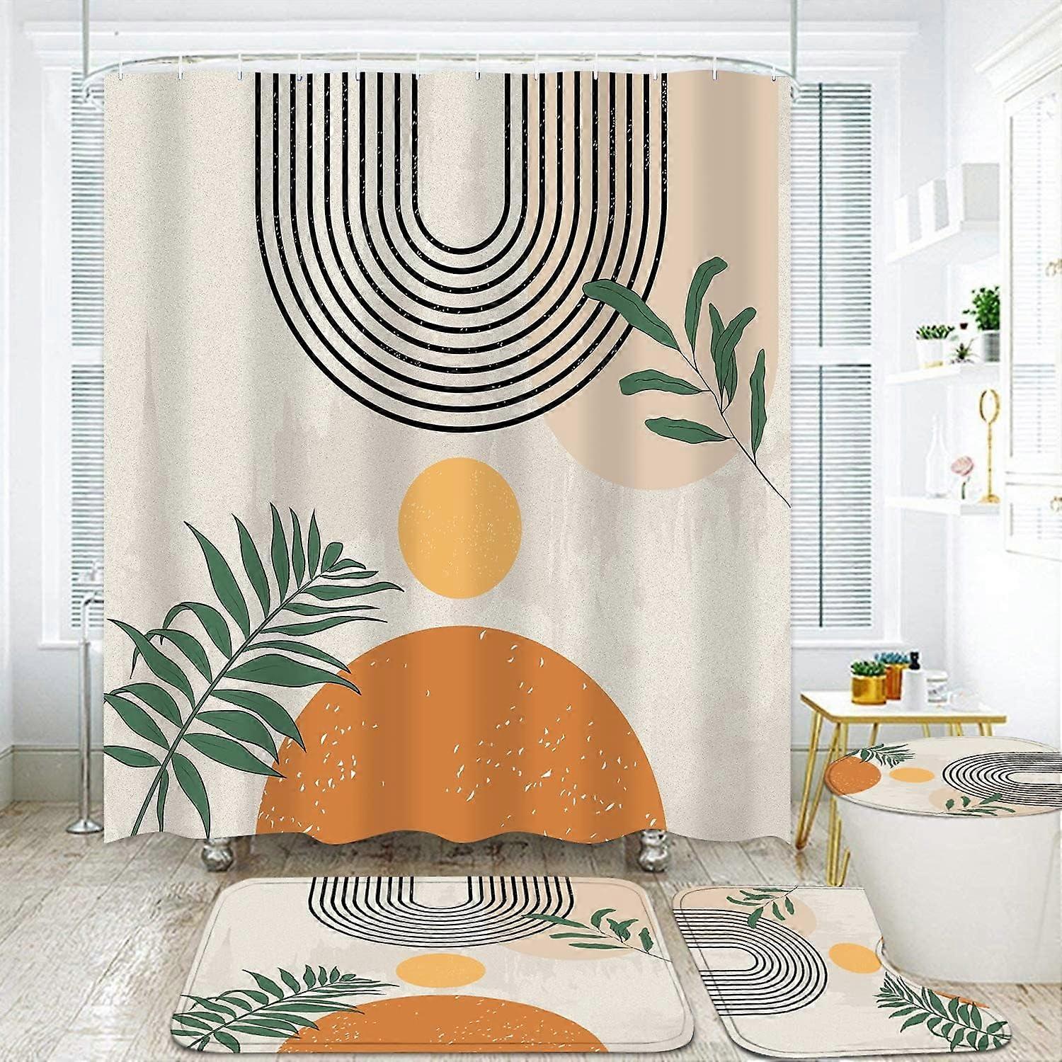 4PCS Boho Shower Curtain Set, Retro Orange Bathroom Set with Rugs & Bath Mat, Compatible with Standard Showers