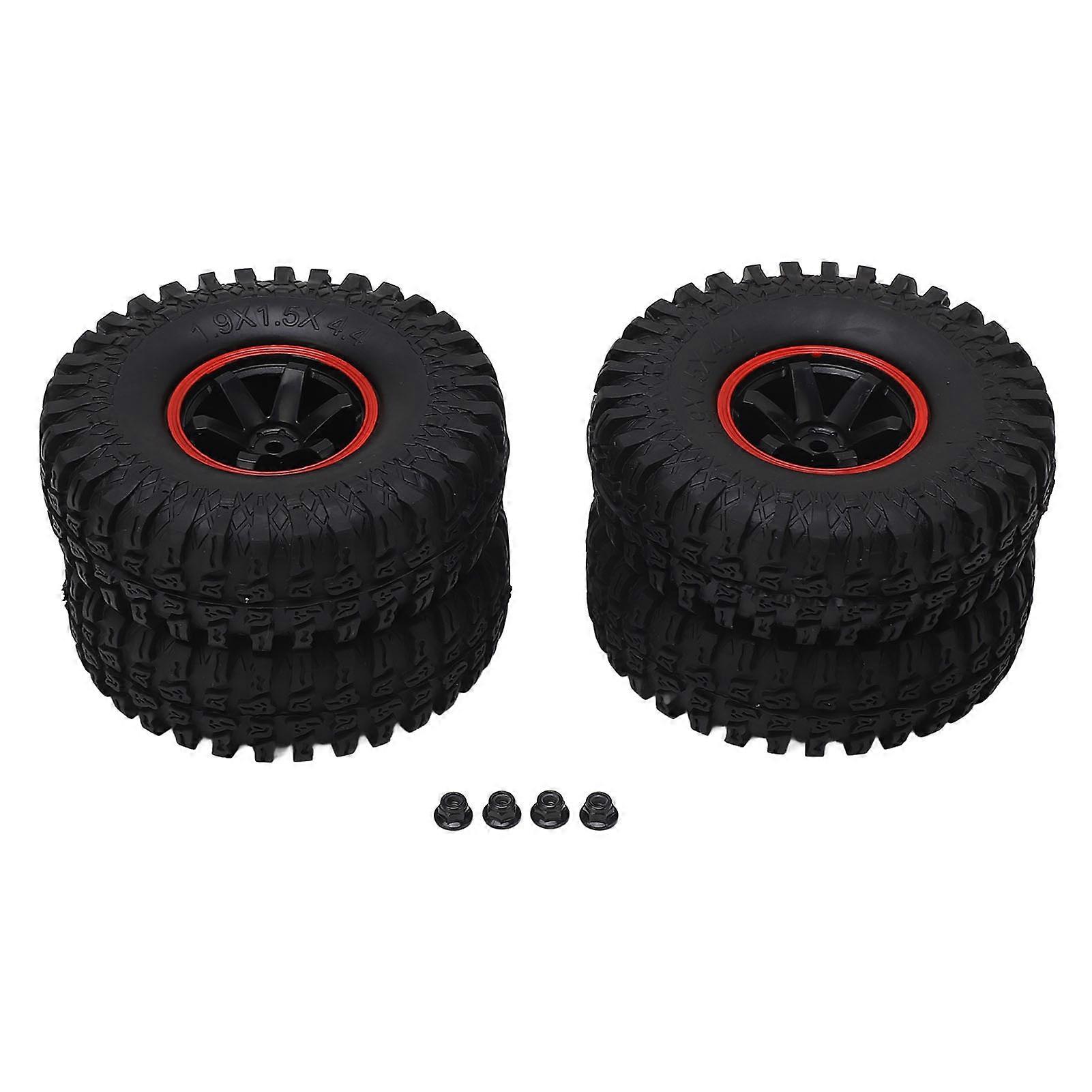 4PCS 1/10 RC Off Road Car Tire Strong Grip 6 Holes Red Rim Rubber Wheels for Axial RC Cars