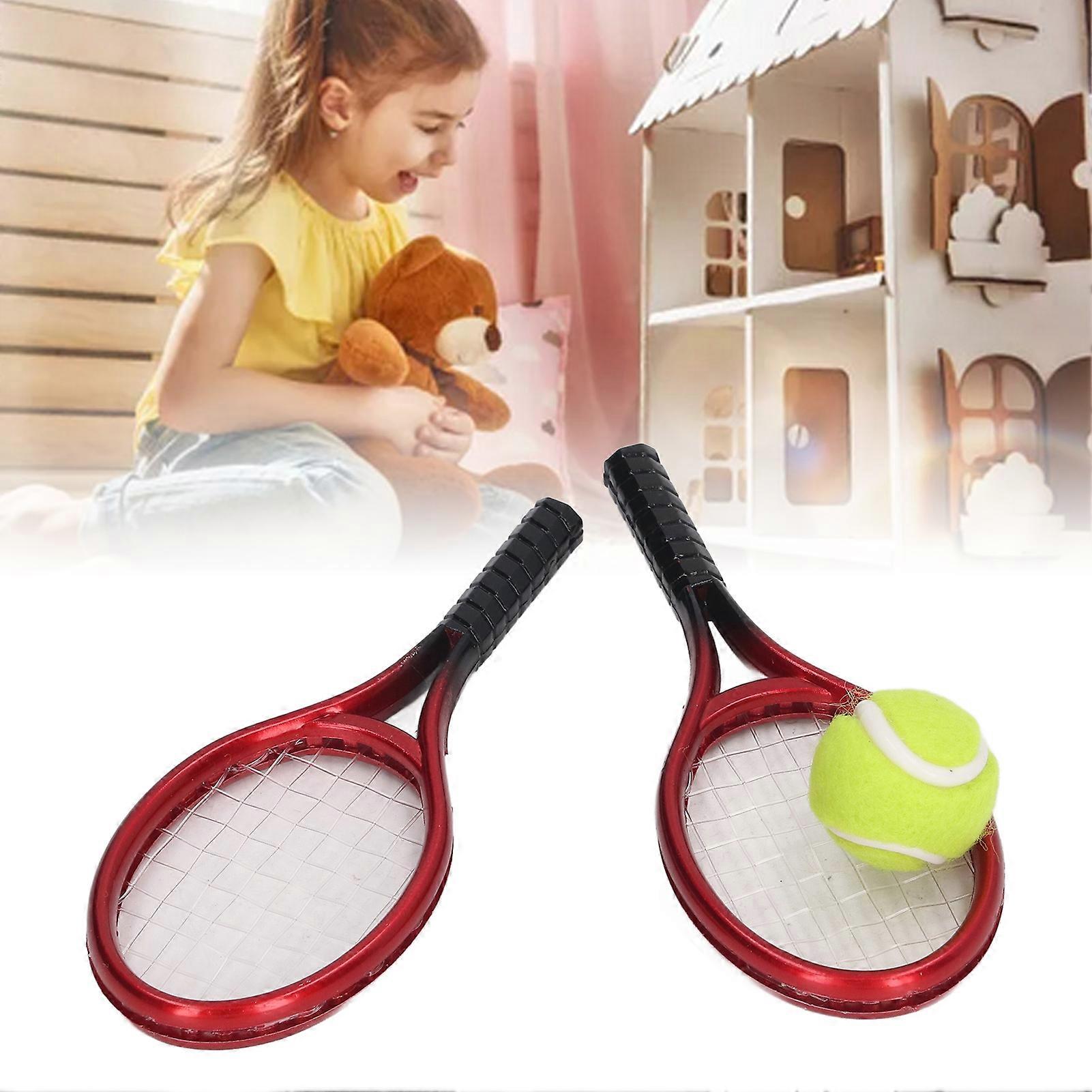 4pcs 1:12 Miniature Tennis Racket Ball Set Dollhouse Decoration Accessories with Storage Bag