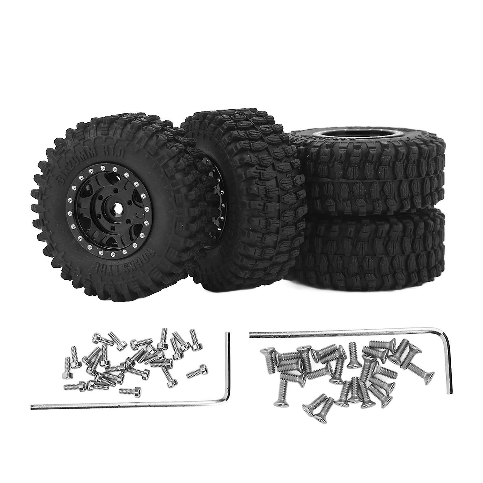 4pcs 1/24 Rubber Tires Aluminum Alloy Deep Unevenness Texture Strong Cushioning RC Wheels for 1/24 RC Car Black