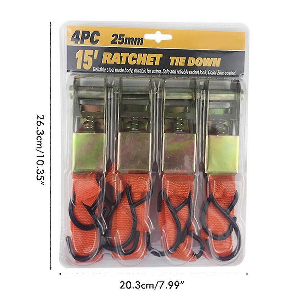 4pcs 15inches 25mm Durable Ratchet Tie Down Cargo Straps Truck Motorcycle Luggage Bag Cargo Lashing Metal Buckle