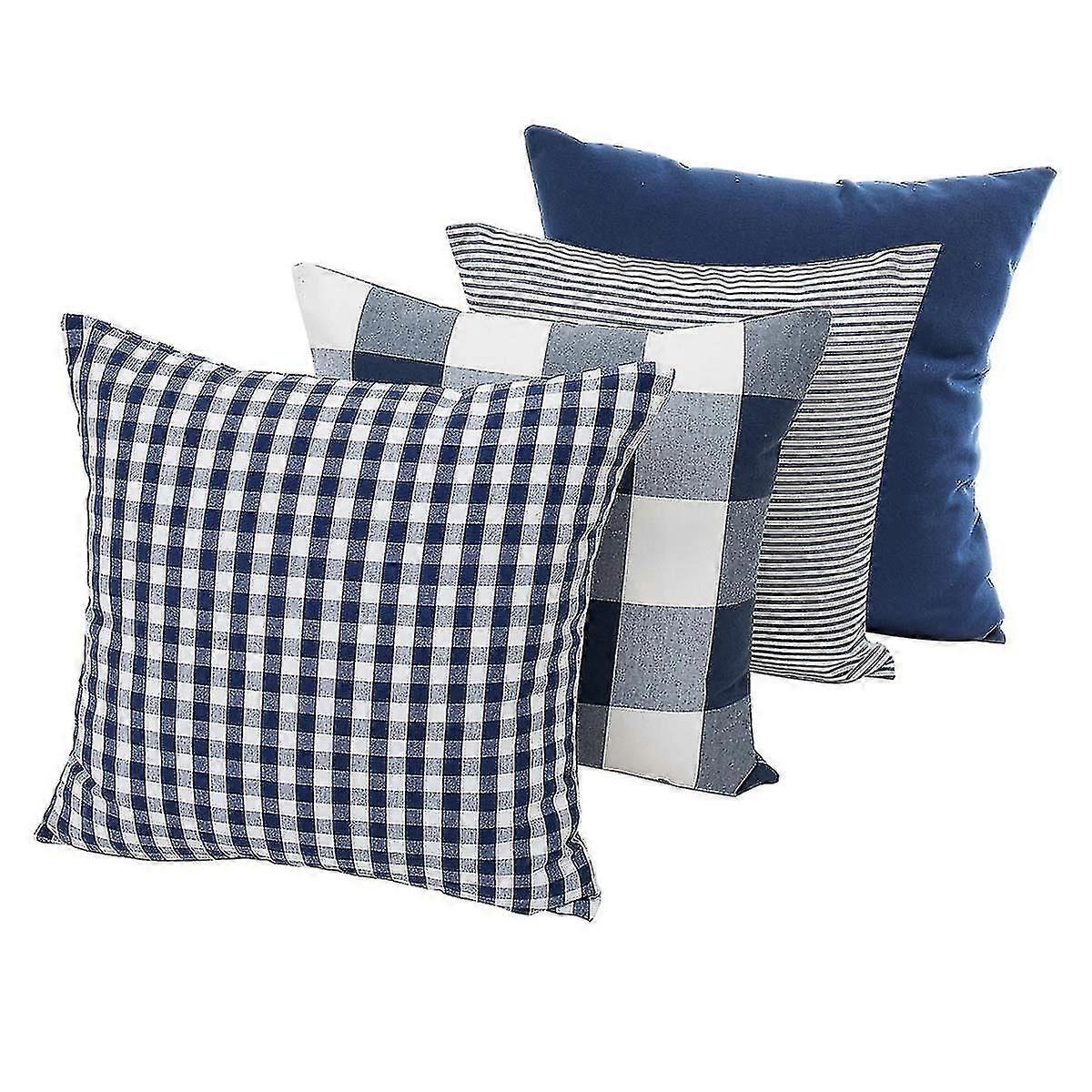 4pcs 45x45cm Cushion Cover Polyester Cotton Plaid Pillow Cases Pillow Cover For Sofa Room Home Office Decoration(big Grid, Thin Stripe, Small Grid, Pl