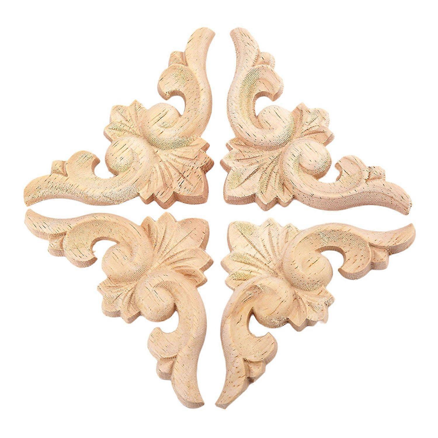 4pcs 6*6cm Wood Carved Corner Onlay Applique Furniture Decor