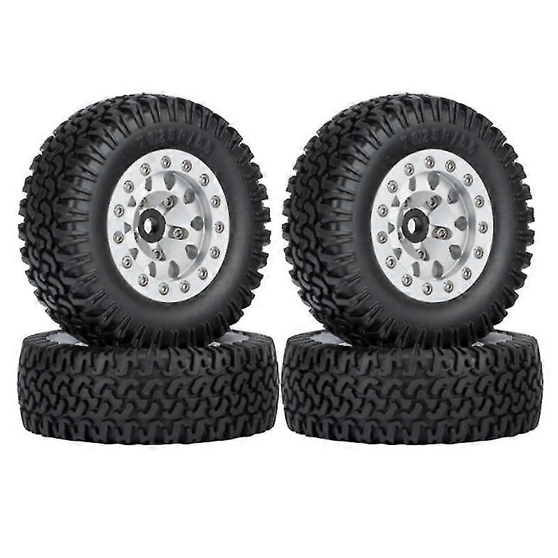 4pcs 76mm 1.55 Metal Beadlock Wheel Rims Tires Set For 1/10 Rc Crawler Car Axial Jr D90,silver Silv