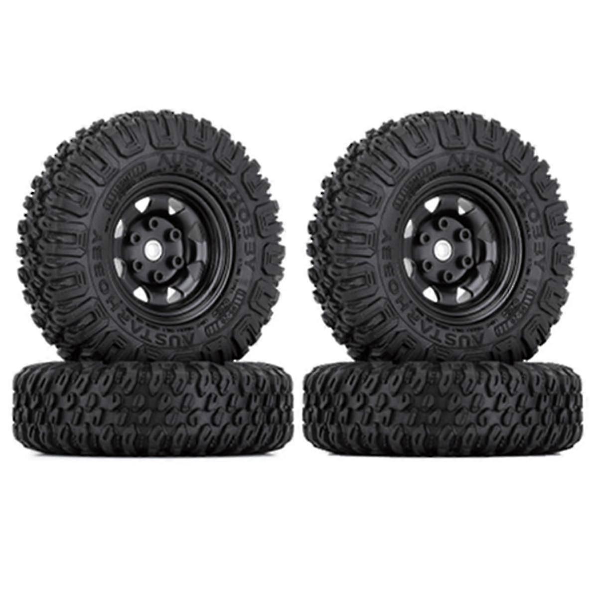 4PCS 85mm 1.55 Metal Beadlock Wheel Rims Tires Set for 1/10 RC Crawler Car Axial Jr D90 ,B