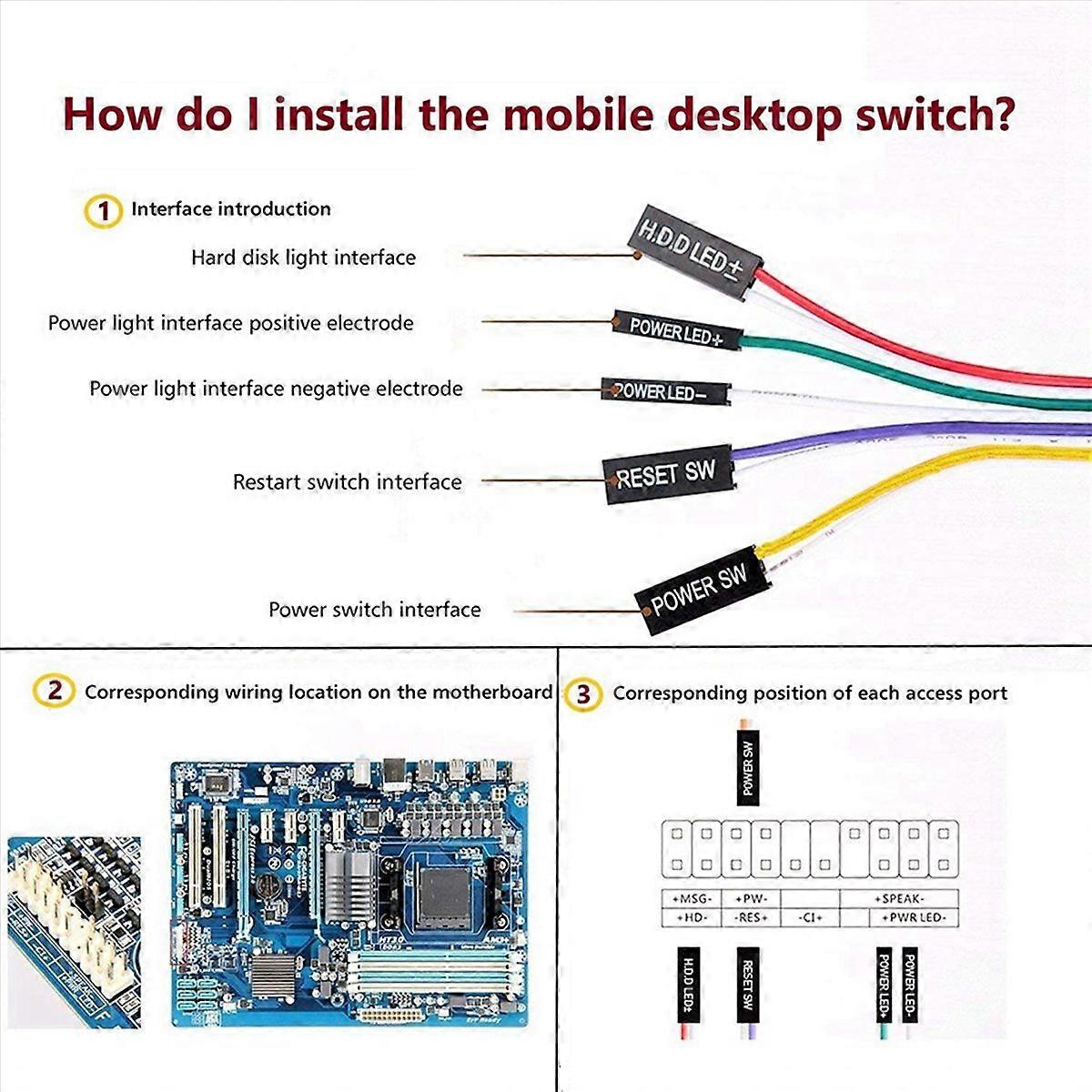 4Pcs Computer Case ATX Power On Off Reset Switch Cable with 2 LED Light Light Red Green ATX Case Fro