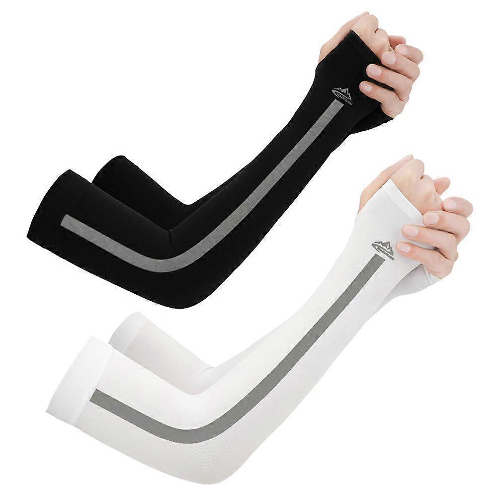 4pcs in 2 pairs Sunscreen Sleeves UV Protection Arm Cover Sunscreen Protector Cooling Sleeves for Men Women Outdoor Riding (Black, White)