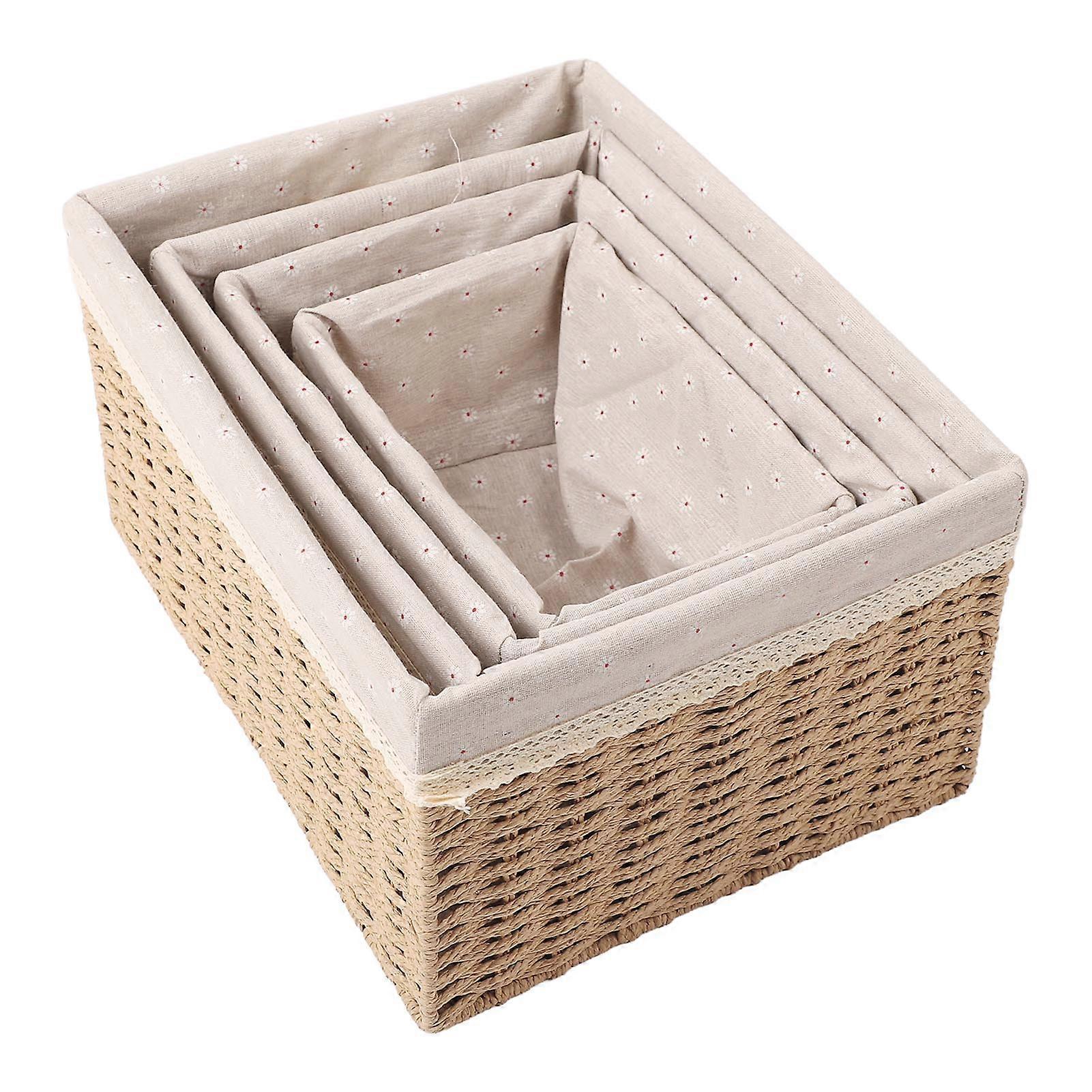 4Pcs Straw Woven Storage Baskets Set, Stackable, Various Sizes