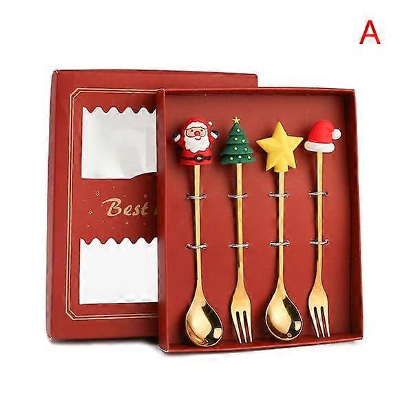 4PCS6PCS Christmas gift Lery Spoon Fork Set Elk Tree Dessert Sp Gold 4pcs