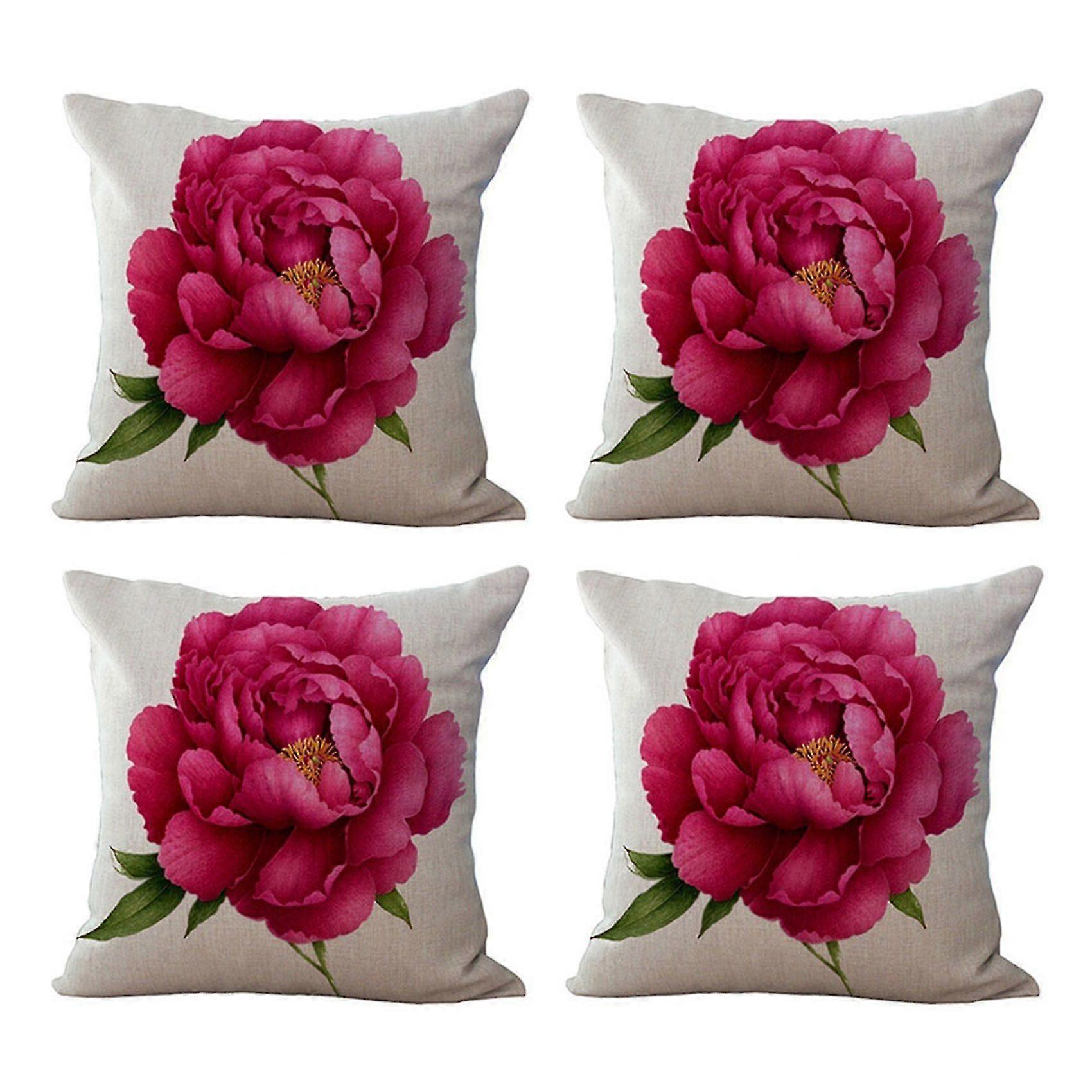 4x Vintage Floral/flower Flax Decorative Throw Pillow Case Cushion Cover Home Sofa Decorative