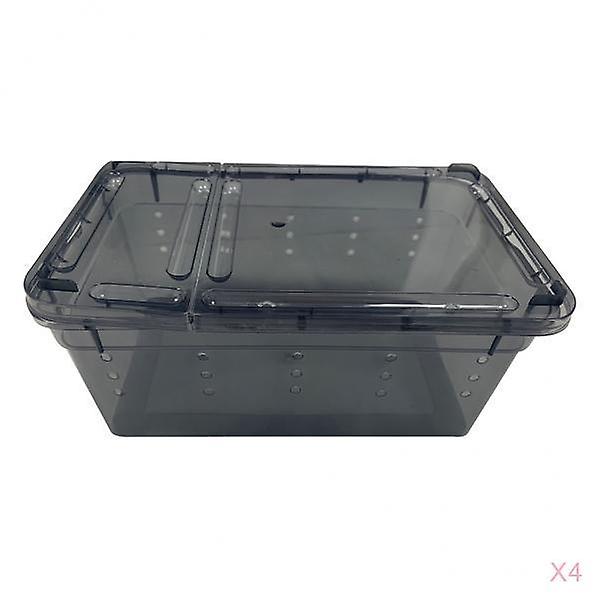 4x Plastic Reptile Breeding Box Spider Feeding Hatching Tank Black