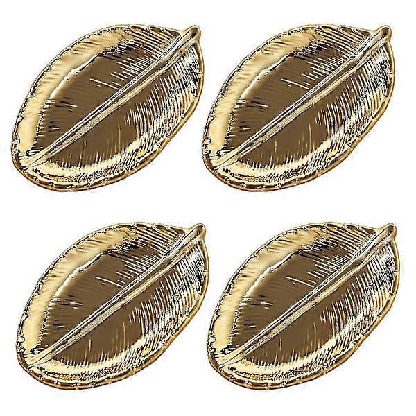 4x Decorative Gold Leaf Ceramic Plate Porcelain Candy Dish
