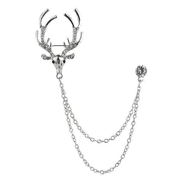 4xDeer Head Tips Double Link Chains Tassels Collar Pins Brooch Clip Pin silver