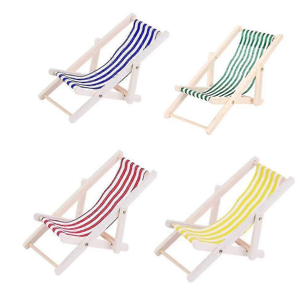 4x Mini Wooden Dolls House Furniture Accessories Deck Chair Dolls Beach Chair For Indoor Outdoor Garden Seaside Beach-2025