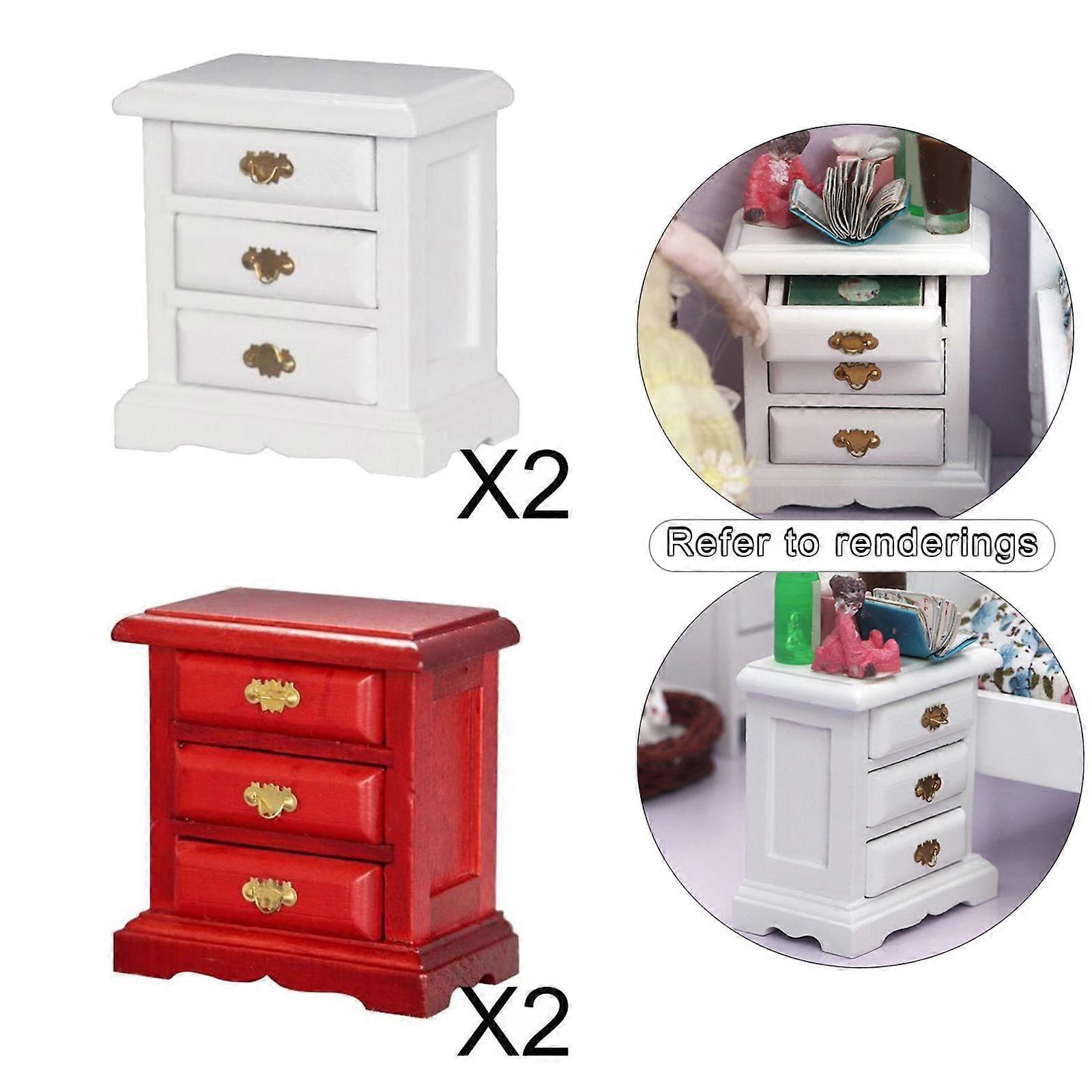 4x 1:12 Miniature Bedside Table Wood Bedroom Cabinet Dollhouse Furniture