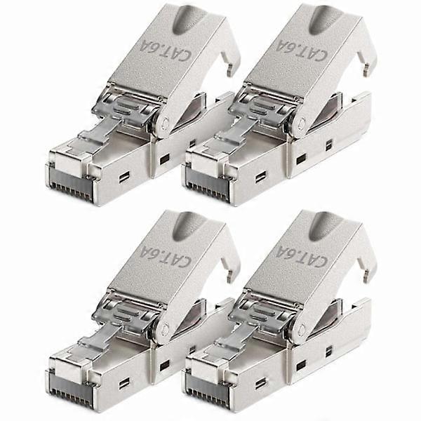 4x CAT 6a toolless RJ45 network connector with LSA connection for solid installation cables, 10Gbps shielded LAN cable connector, metal.