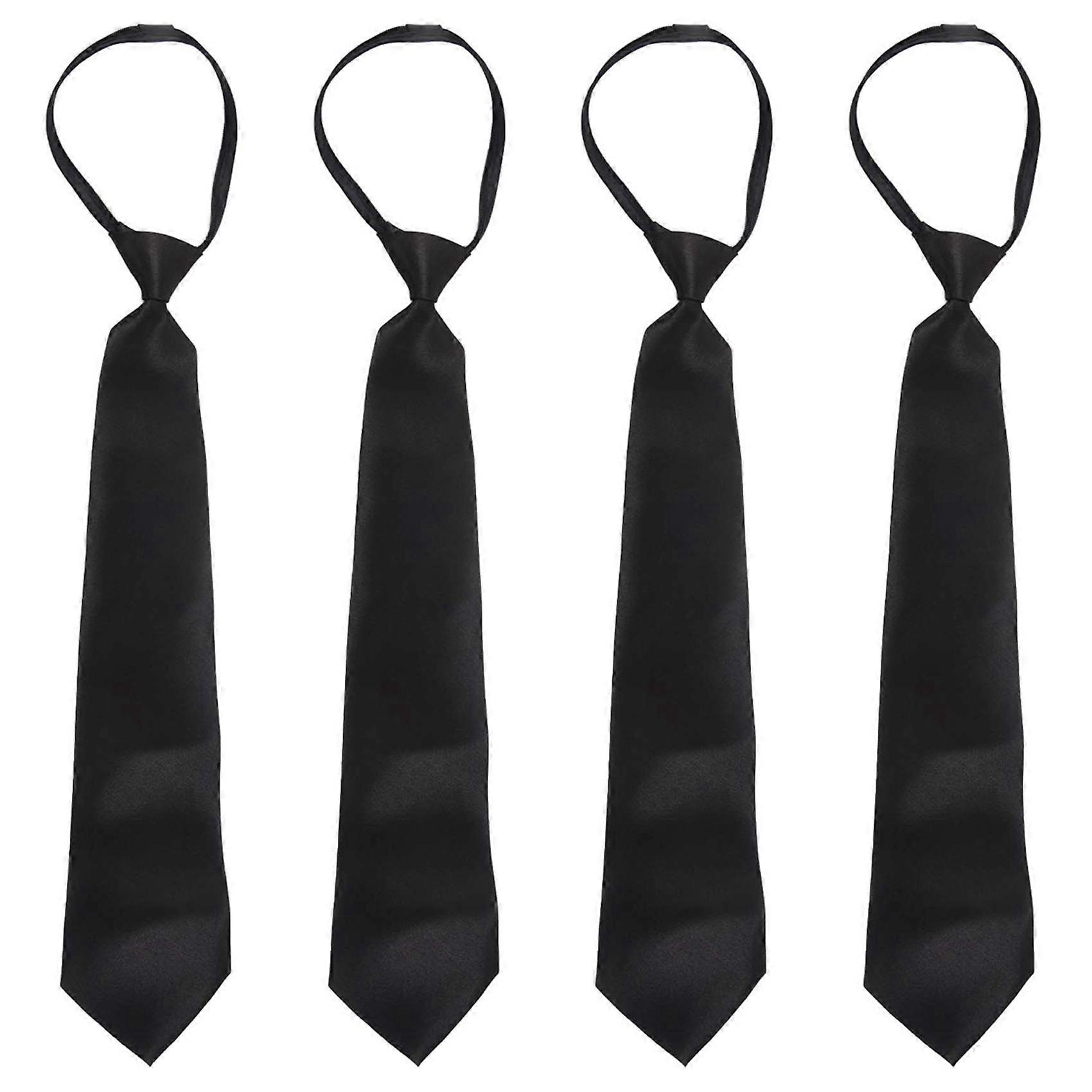 4X Men Solid Black Polyester Zip Up Necktie Smooth Zipper Tie