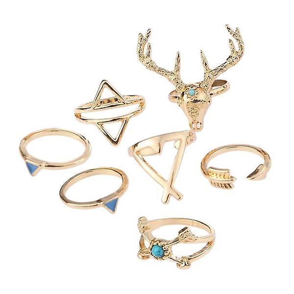 4x7pcs Women's Bohemian Ring Set Deer Arrows Triangle Golden