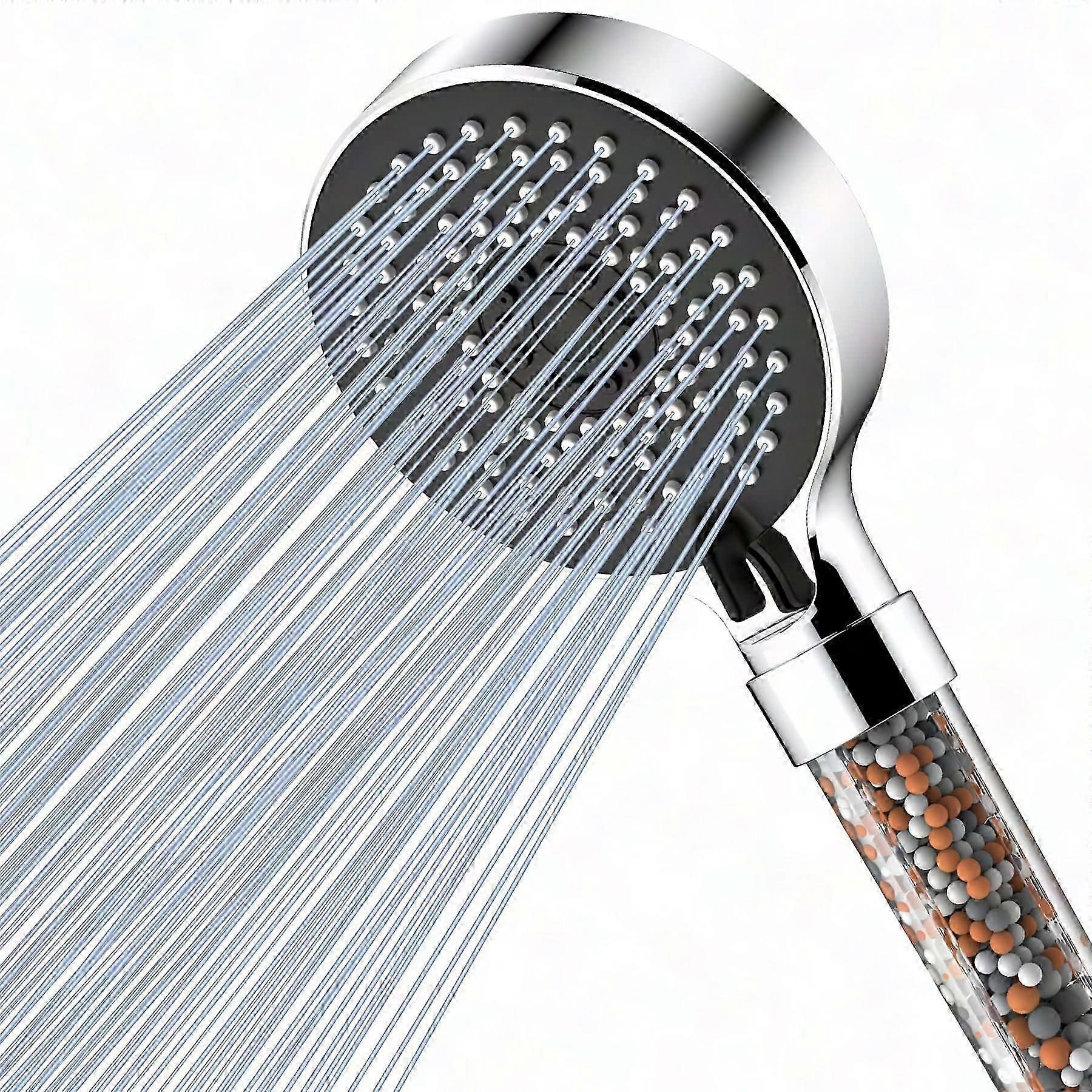 Filter Shower Head Our filter shower head is equipped with mineral balls to remove chlorine and other contaminants in shower water, helping to maintain the natural moisturizing oils of hair and body, protect our body pores.High Pressure Shower Head This power shower head can increase the water pressure of shower. It has the density and strong water, which will make you get rid of all the troubles of traditional showers and enjoy a healthy rain shower.5 Modes Showerhead This powerful shower head has five different modes. Each mode is made to enhance your shower experience,get you wonderful shower experience in your bathroom.Upgraded Switch Button - We upgrade the switch button of this shower head. The new switch is better than the ordinary filter shower heads in the market, which is not easy to broken.Anti-Blocking Silicone Nozzles This shower head filter is designed with the anti-limescale silicone nozzles, which will prevent the build-up of limescale and easy to clean. It will give you a better using experience.Easy To Install The shower head is easy to install without tools; simply screw onto any standard shower hose( G1/2 interface).